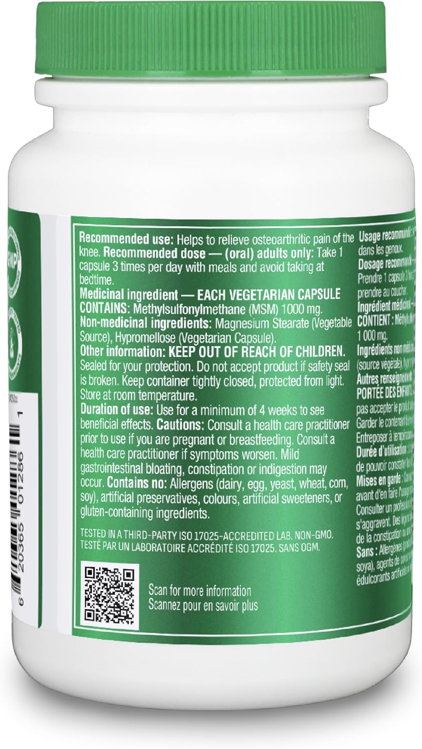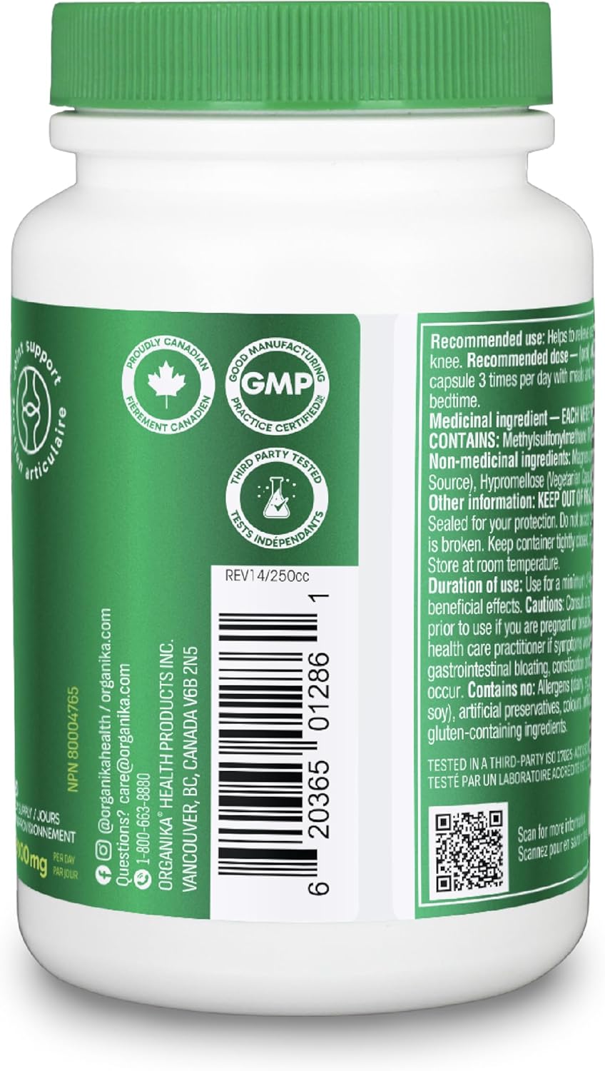 Organika MSM - 关节支持和炎症缓解补充剂 | 支持更健康的关节、骨骼和软骨 | 更强韧的头发、皮肤和指甲 | 强效抗氧化剂 | 1,000 毫克 MSM - 90 粒素食胶囊