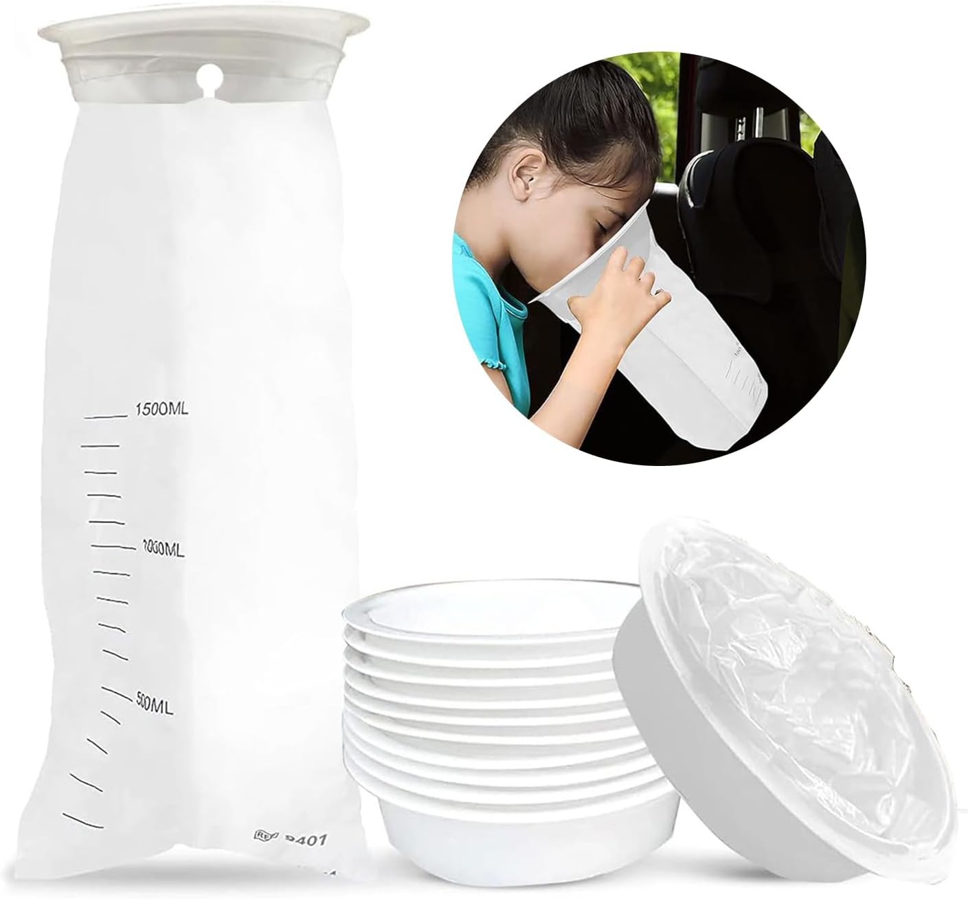 便携式呕吐袋,容量大,适合旅行晕车和孕吐,轻松收集唾液和呕吐物