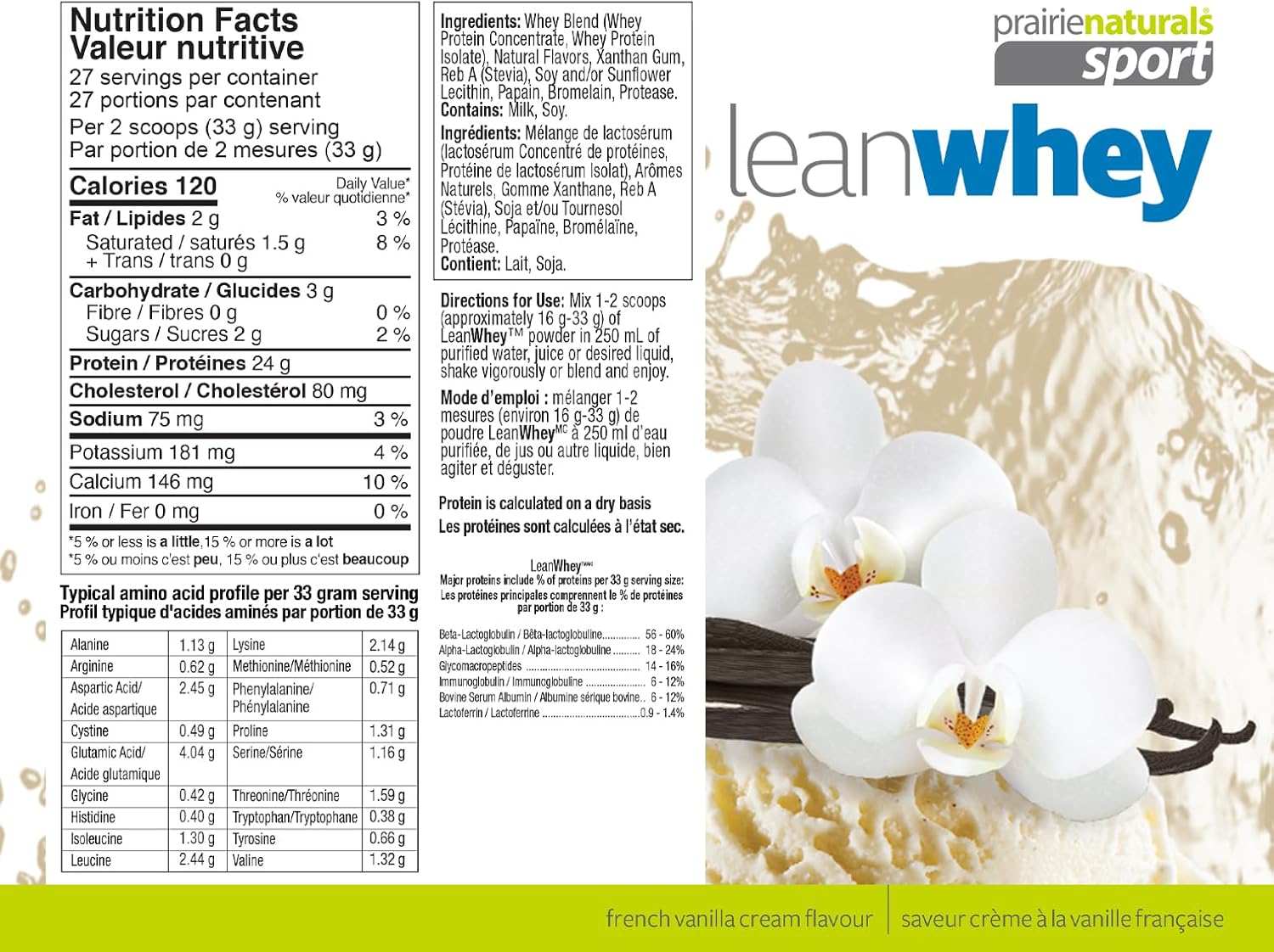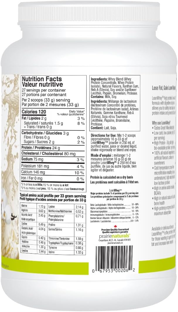 使用 Lean Whey 塑身并保持苗条身材。这款 Prairie Naturals 出品的优质易消化蛋白粉,能够促进脂肪燃烧,增加肌肉质量。Lean Whey 采用纯正、微滤、低温加工的优质乳清蛋白配方,无糖且超低卡路里。纯天然,不含人工香料、甜味剂或色素。可快速混合,口感极佳。不含牛生长激素。