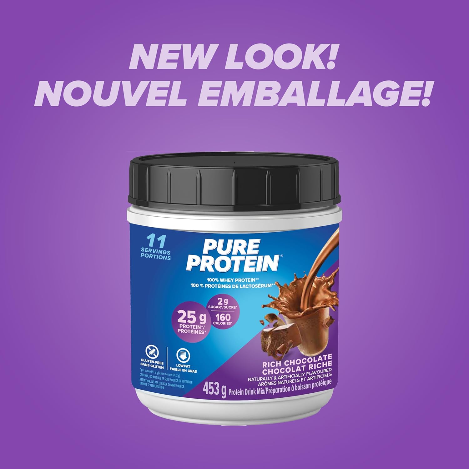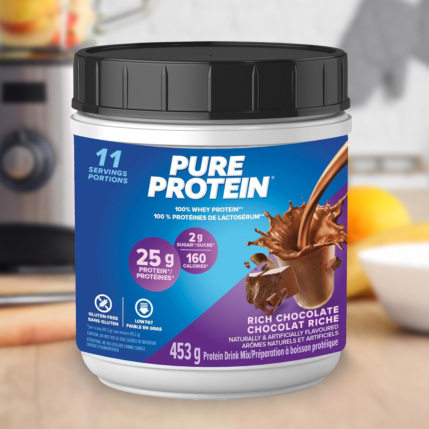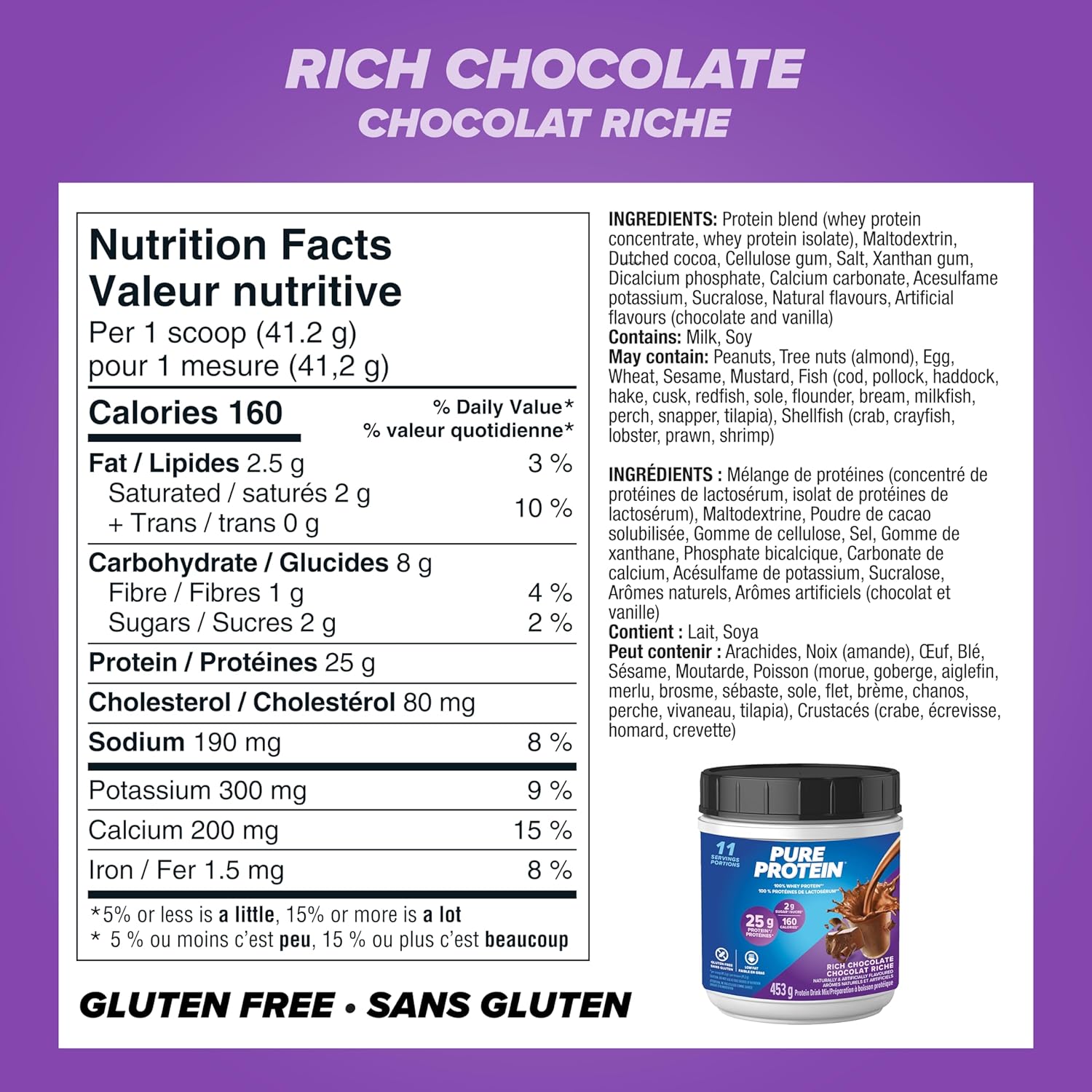 纯蛋白乳清粉 - 高蛋白(25 克/勺)、低糖(2 克/勺)、无麸质 - 速效配方,巧克力味,453 克