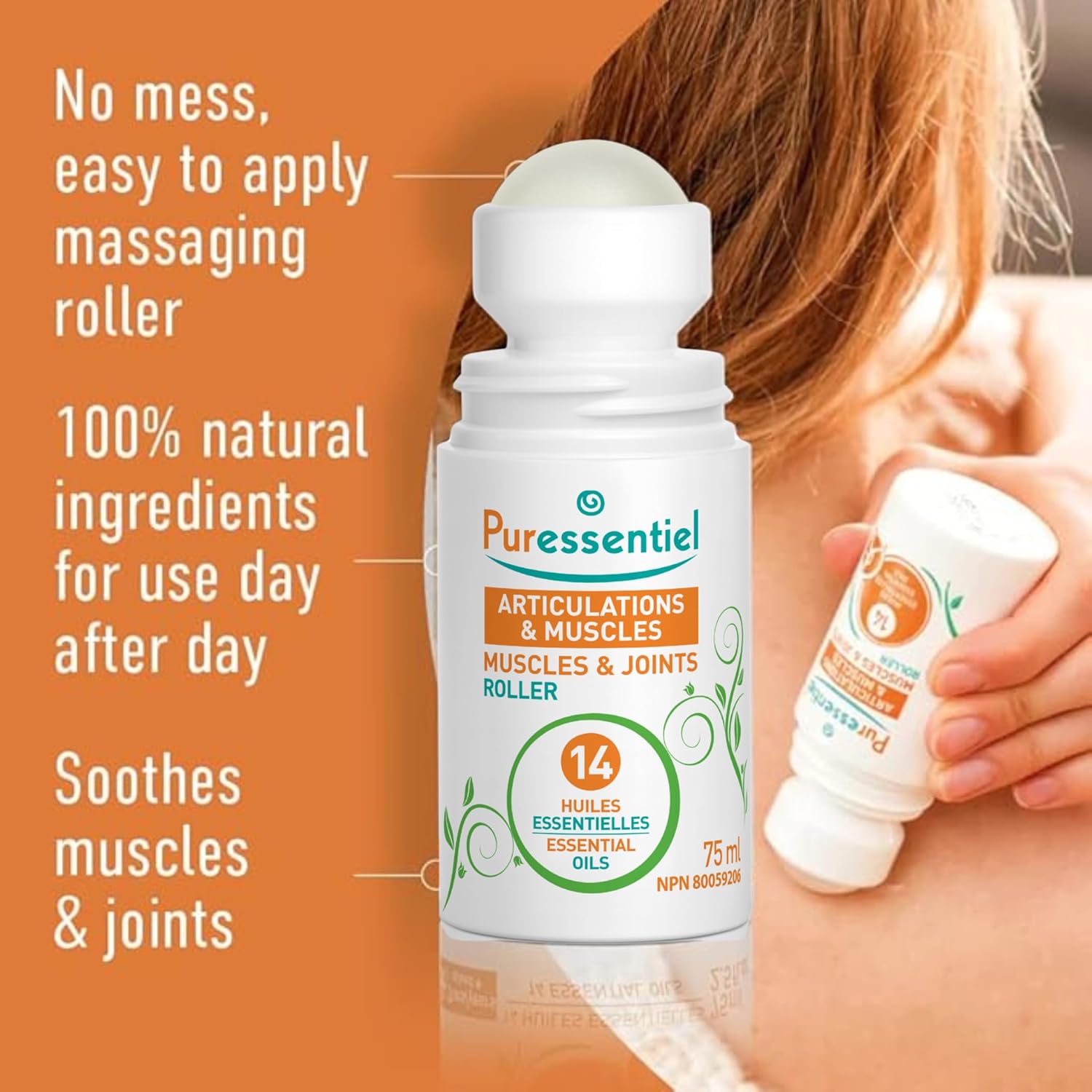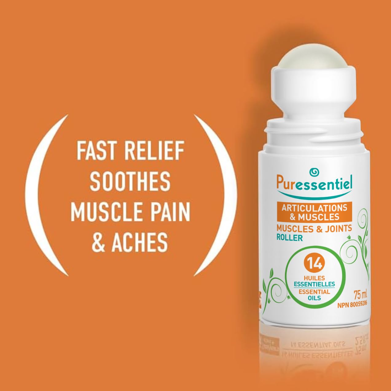 PURESSENTIEL - 肌肉和关节滚珠,含 14 种精油 - 暂时缓解肌肉和关节疼痛 - 经临床验证 - 非常适合运动员和关节炎患者 - 75 毫升