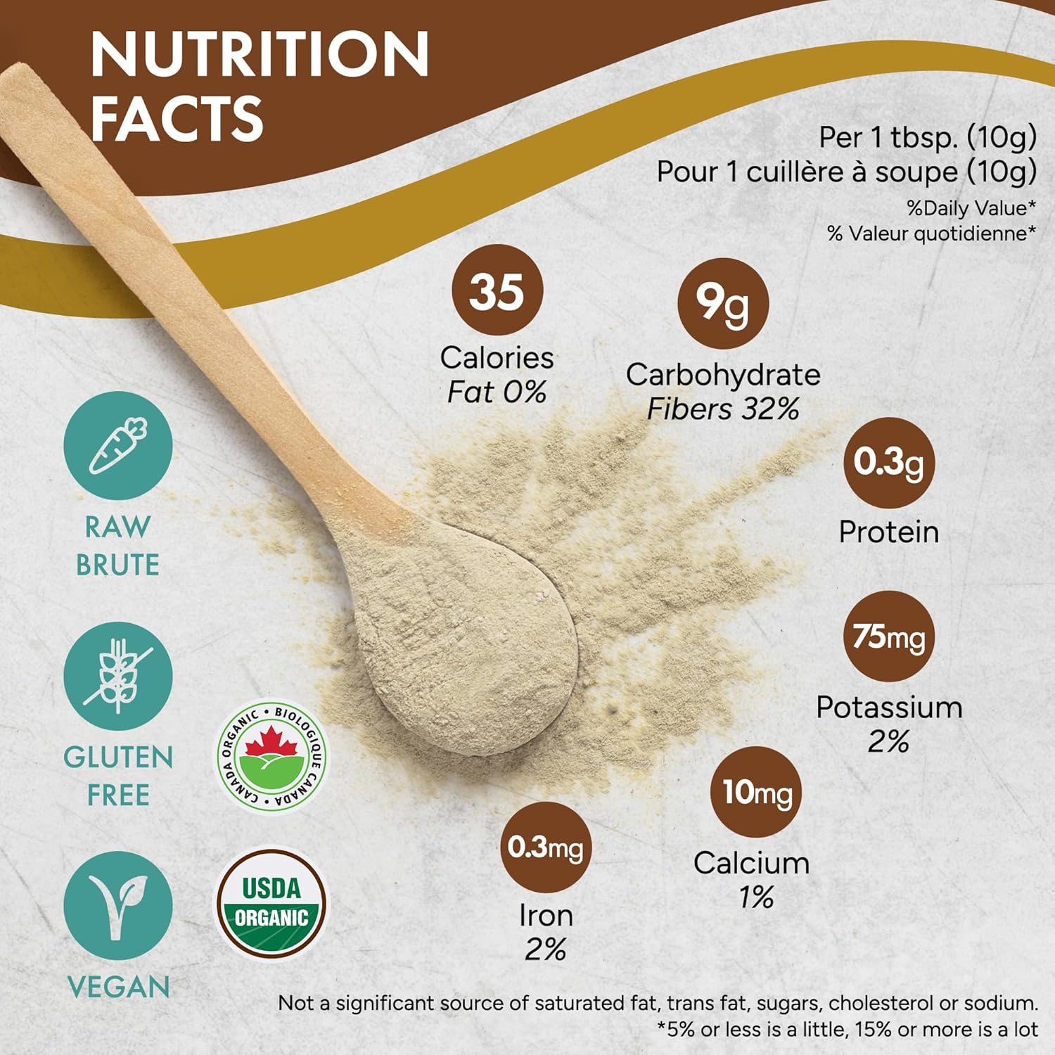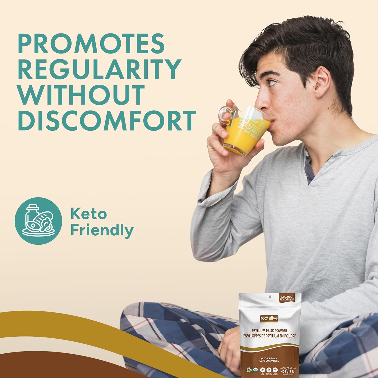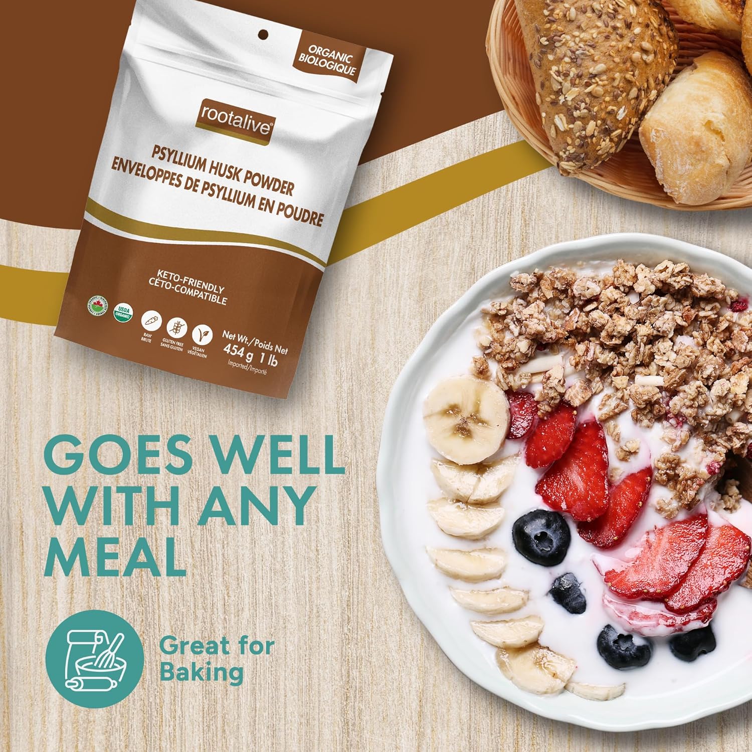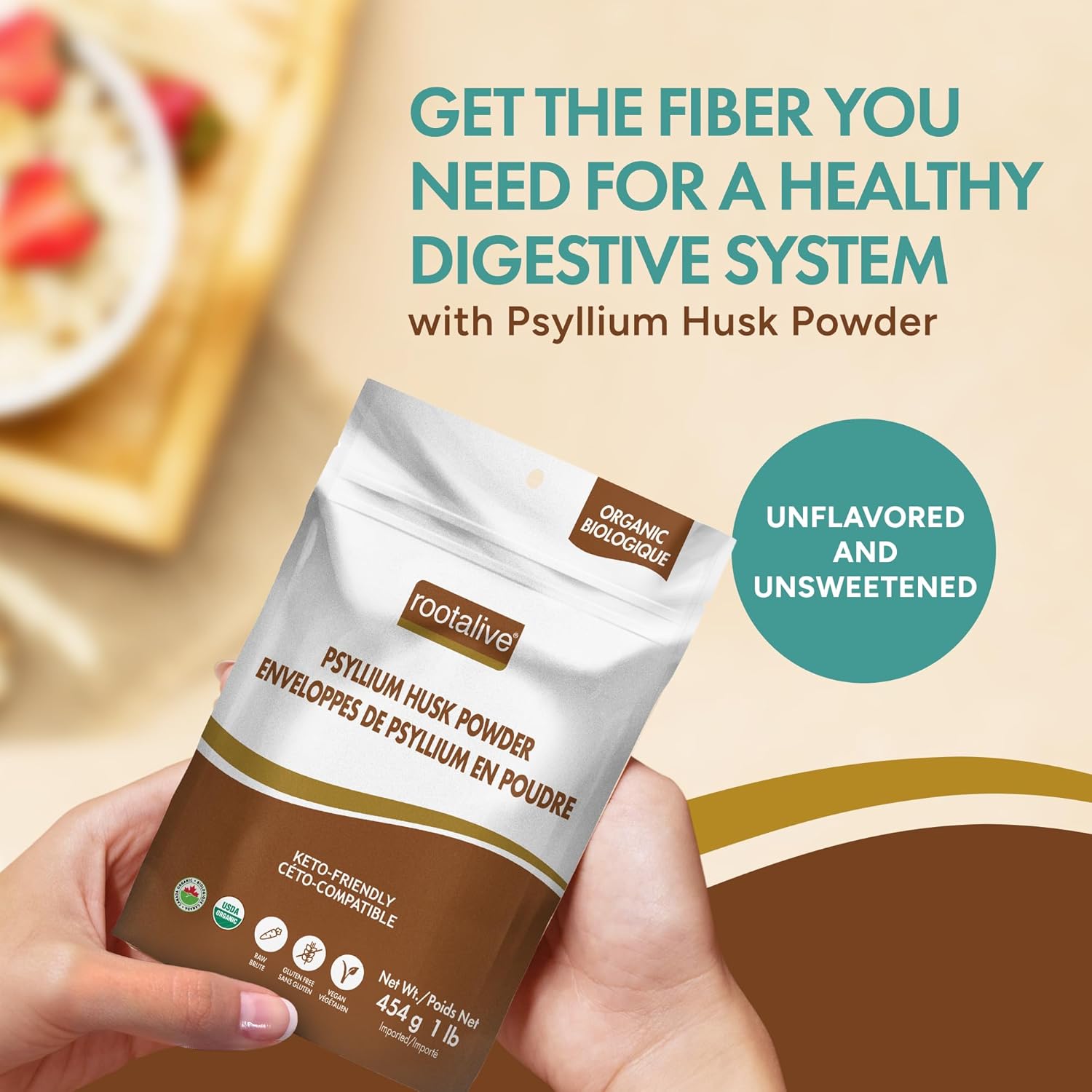 Rootalive 有机洋车前子壳粉 454 克(1 磅),植物性纤维,有助于消化,无味超级食品,含可溶性纤维和不溶性纤维,纯素,无麸质