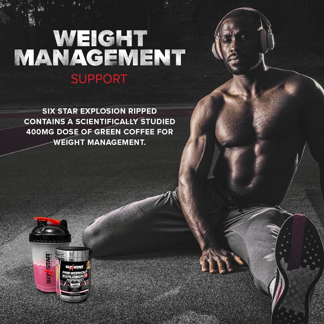 Six Star 锻炼前 + 减重配方、Six Star 锻炼前爆炸式撕裂能量粉、男女适用、含 β-丙氨酸的锻炼前粉末(可提升能量、注意力和强度)、粉红柠檬水(30 份)