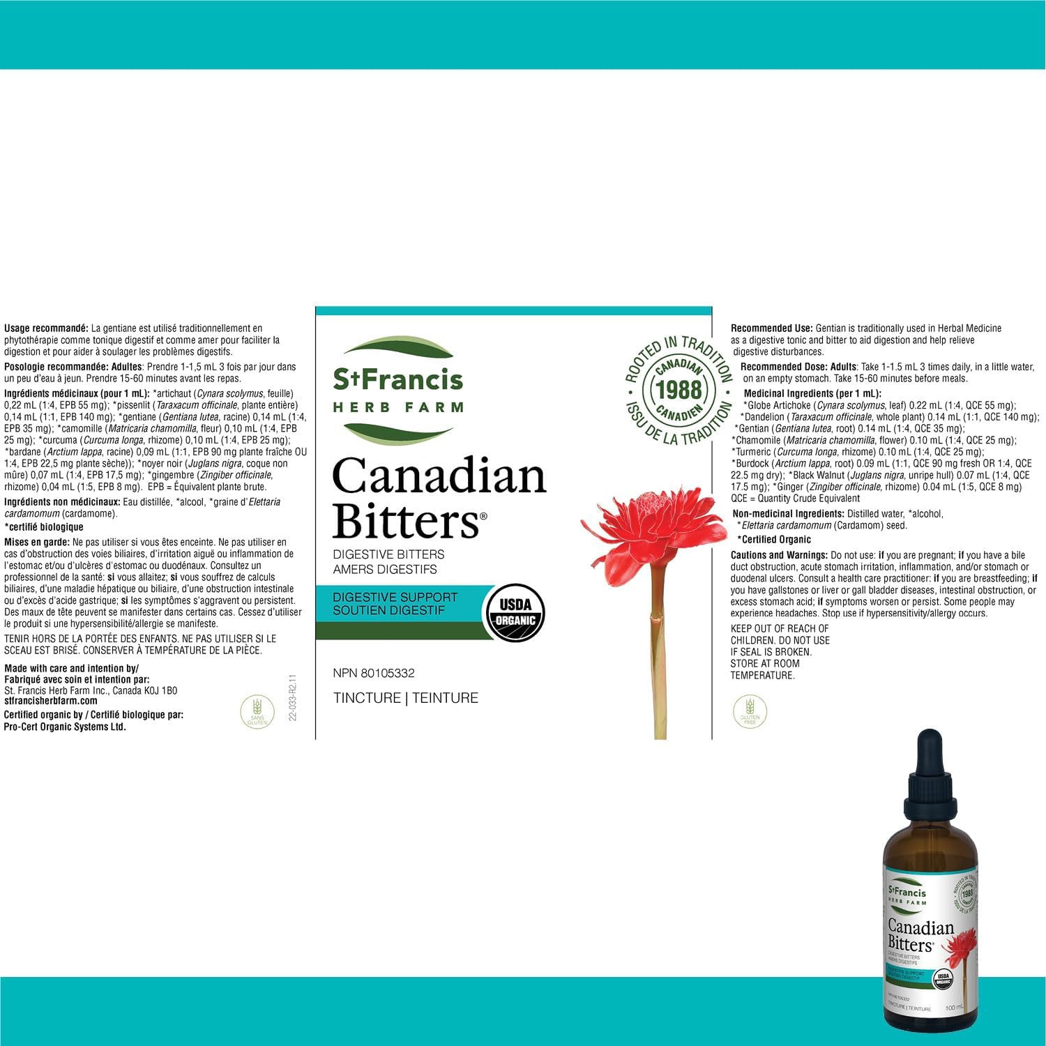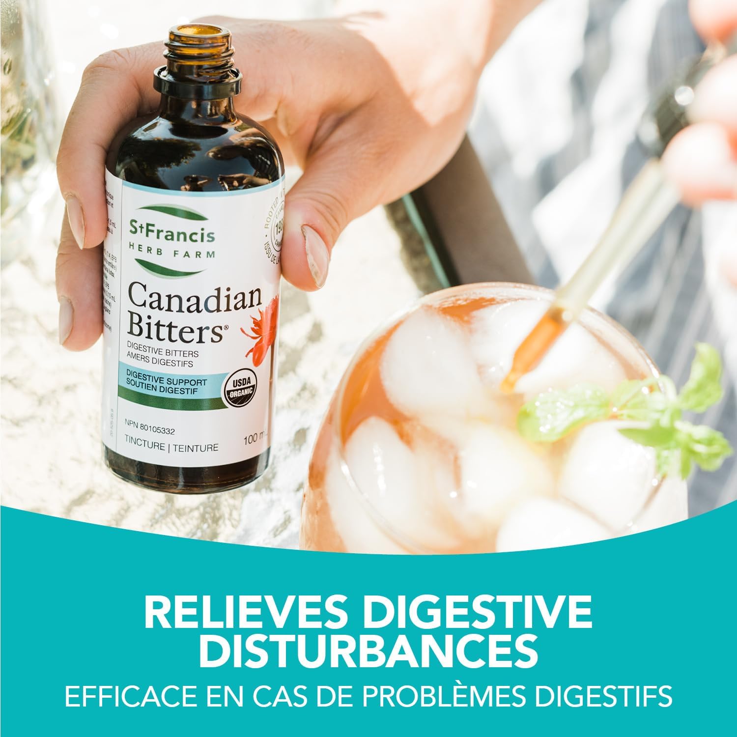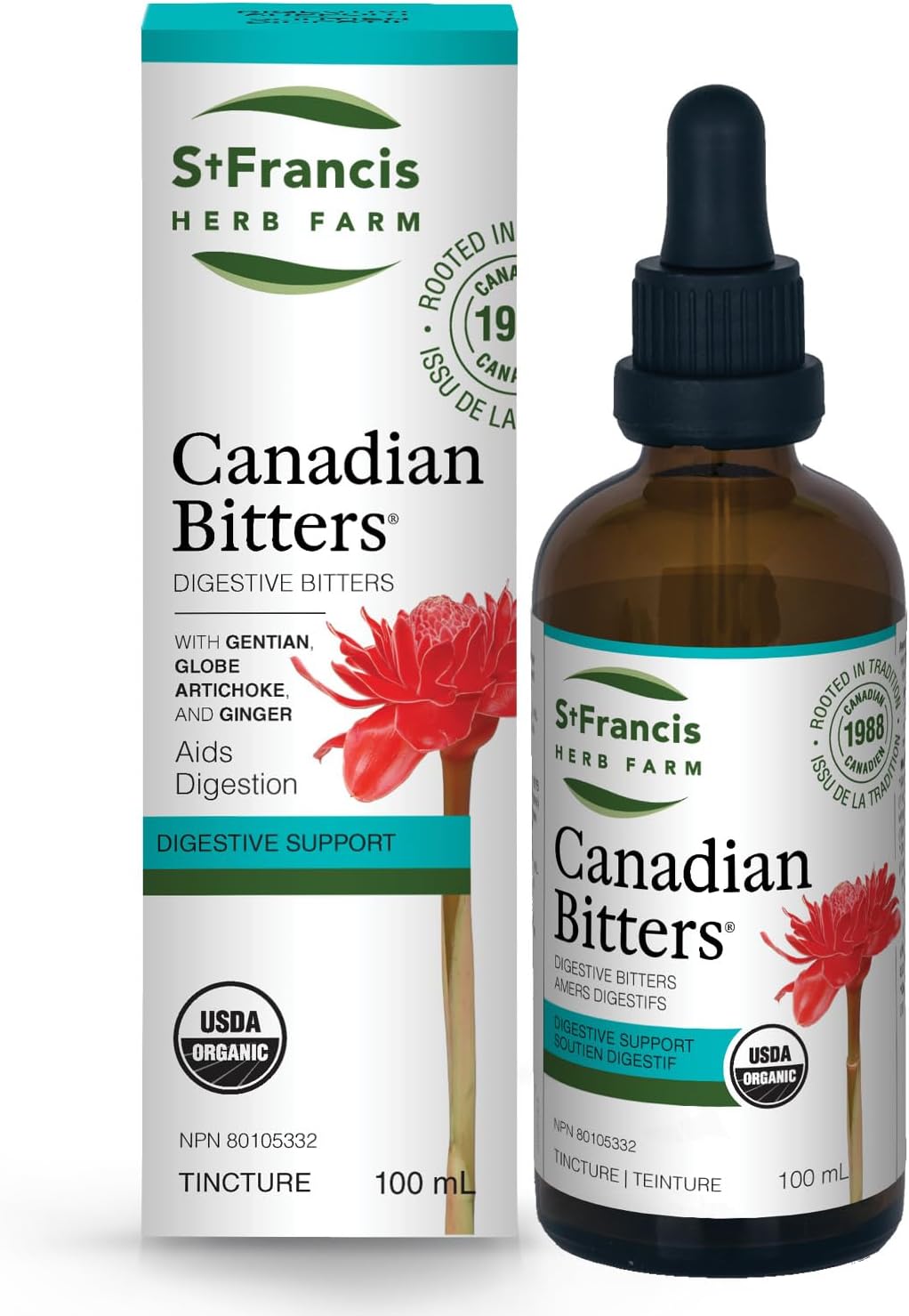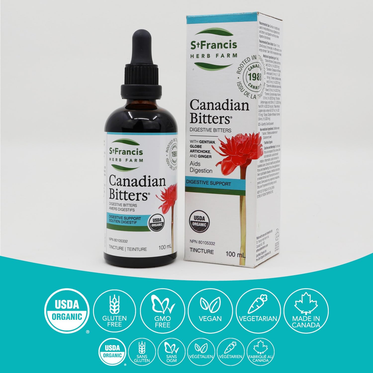 圣弗朗西斯草药农场加拿大苦味酒 (100ml) 天然缓解胃部不适、胃灼热和腹胀 (1 酊剂) 有机认证,不含转基因成分,不含麸质,纯素,素食,加拿大制造,1988 年