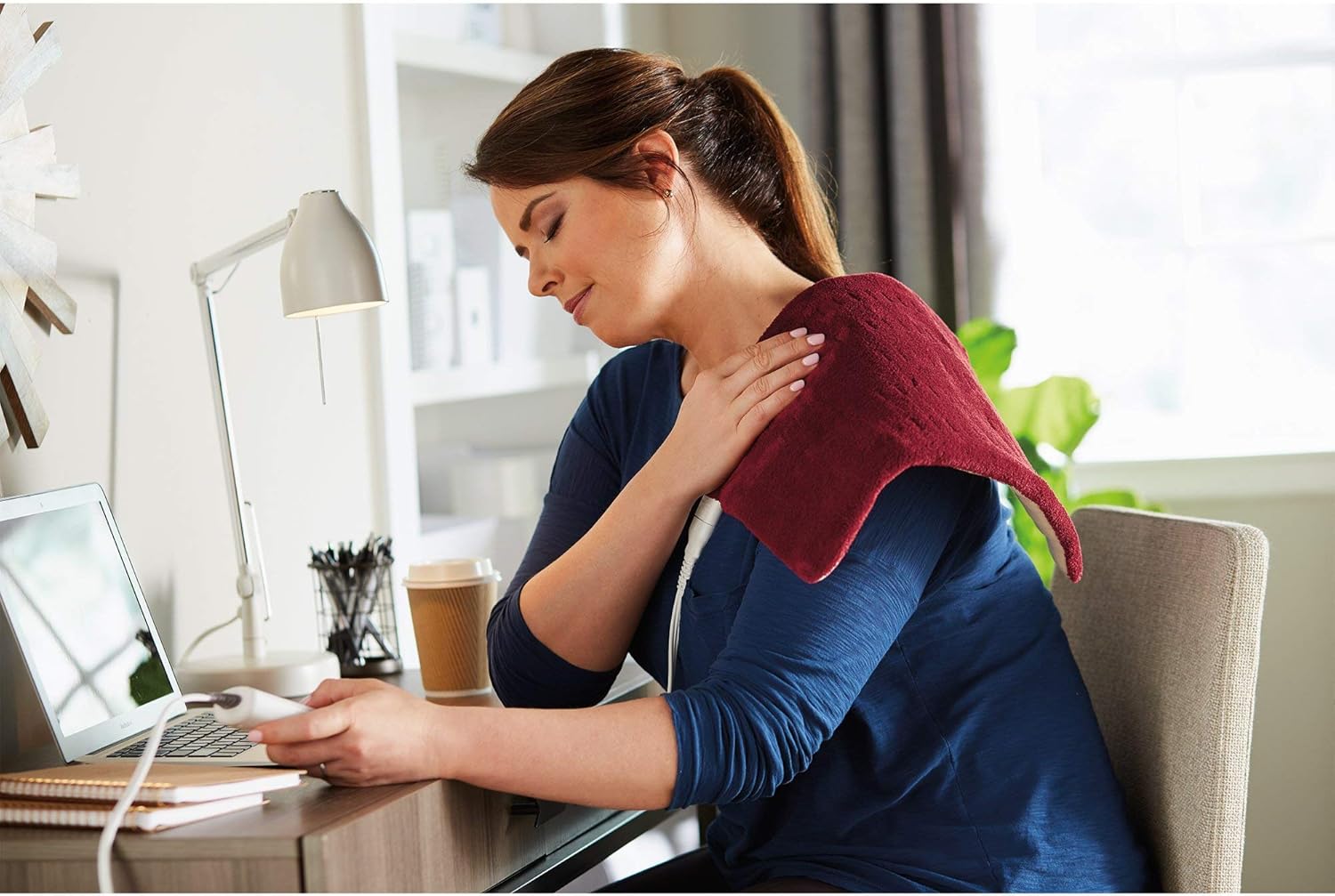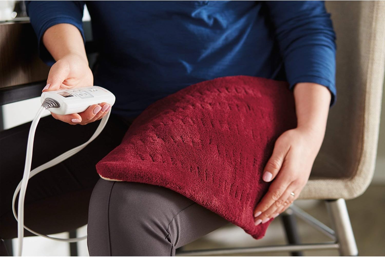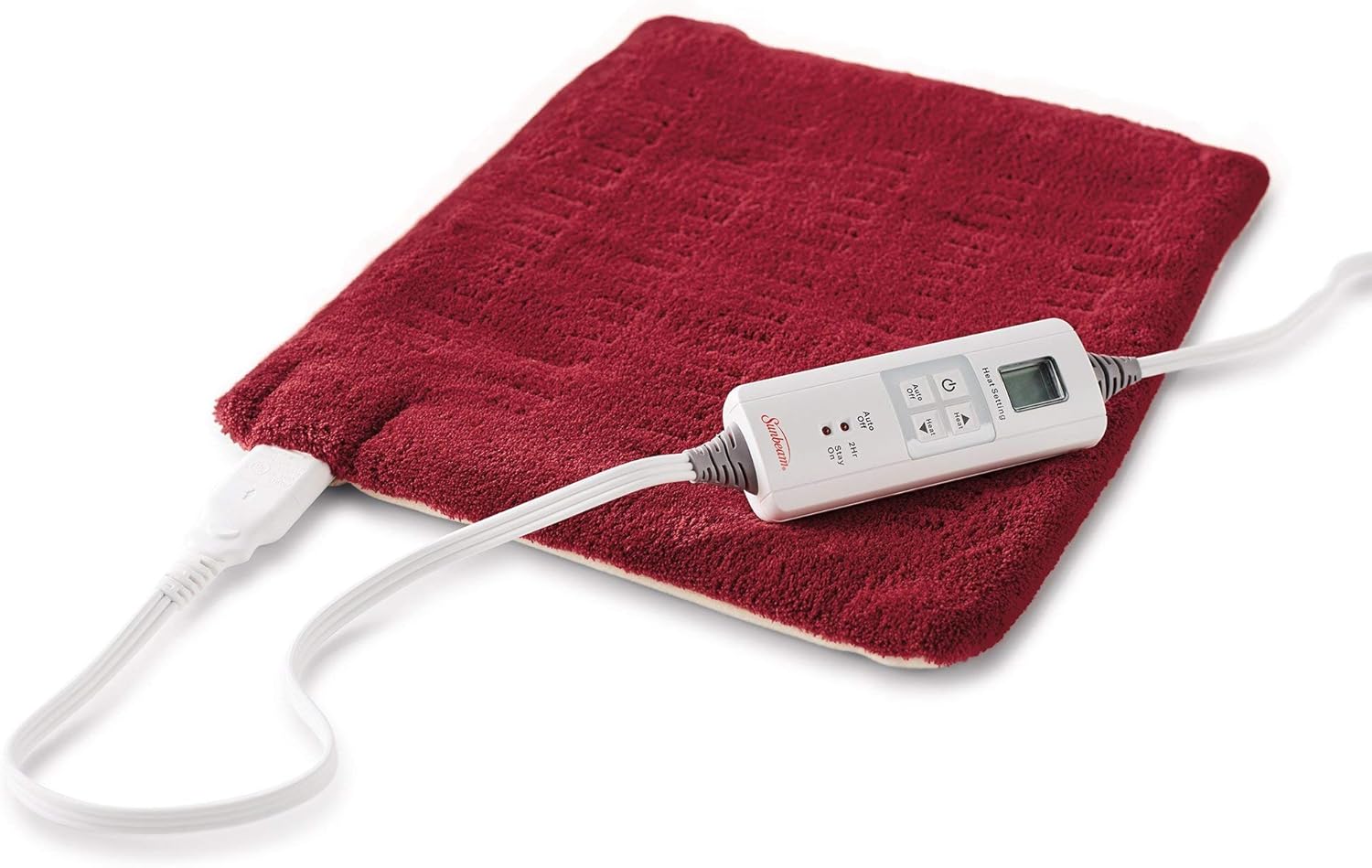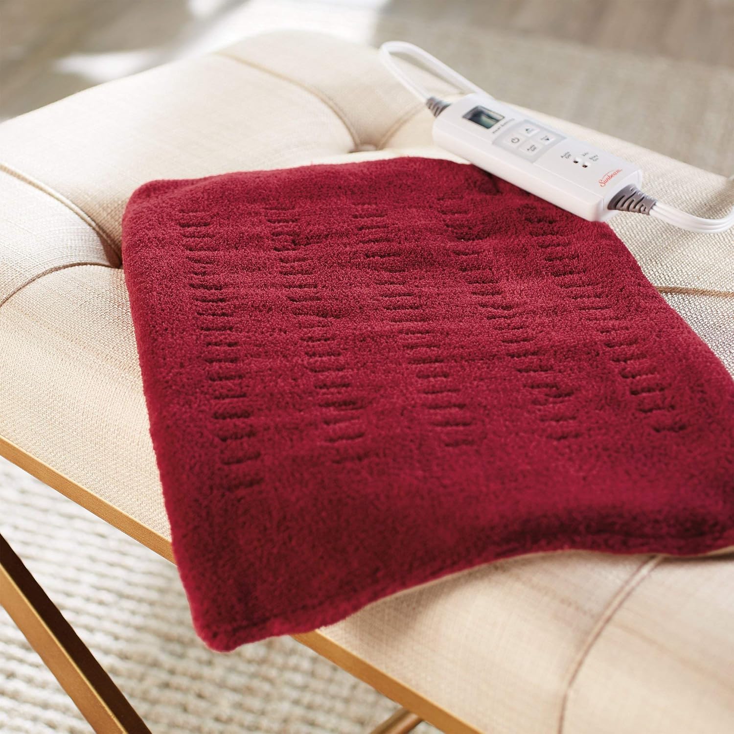 Sunbeam Microplush XpressHeat 加热垫,6 种加热设置,选择小时自动关闭,湿热/干热,12 英寸 x 15 英寸,石榴红色