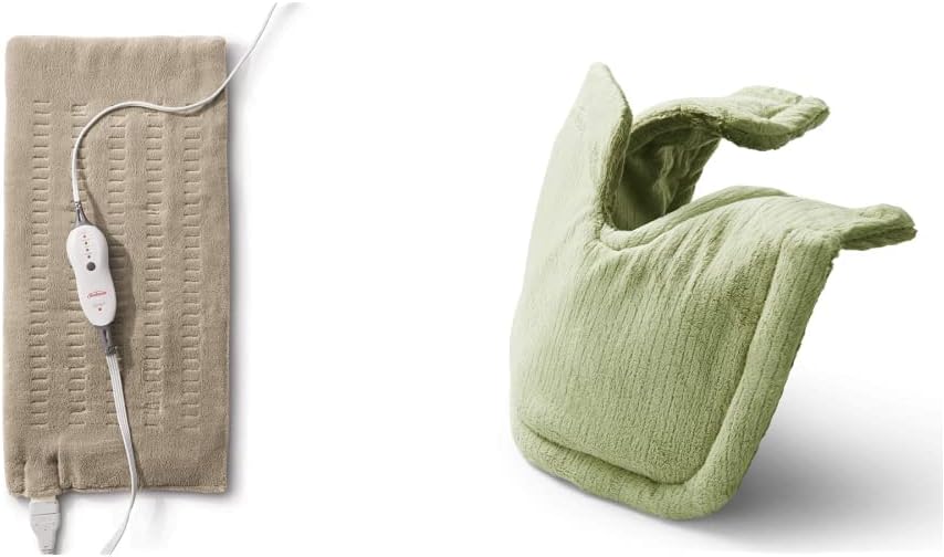 Sunbeam 特大号湿润一体式加热垫,米色Sunbeam 特大号 12 x 24 英寸超细毛绒干湿加热垫,具有 2 小时自动关闭功能,可机洗,4 种加热设置,湿热选项可提供更多缓解和更深层的渗透热量。Sunbeam Renue 缓解紧张加热垫,水疗绿色Renue 热疗包可直接向压力和紧张区域提供放松、治疗性的热量,舒缓颈部、背部和肩部紧张。独特的形状和上部翻盖可对整个区域进行治疗,而略微加重的边缘和宽大的尺寸可提供定制贴合,从而牢固地增加接触。