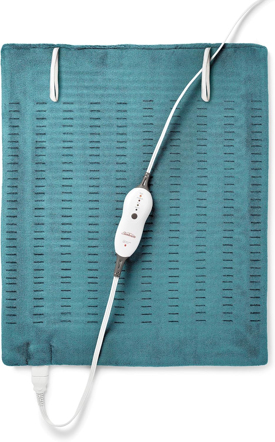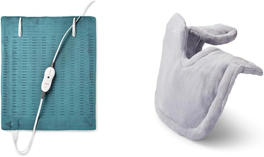 Sunbeam Premium XXL 尺寸加热垫,带紧凑存储电热垫和 Renue 热敷带,颈部和肩部紧张缓解加热垫,灰色