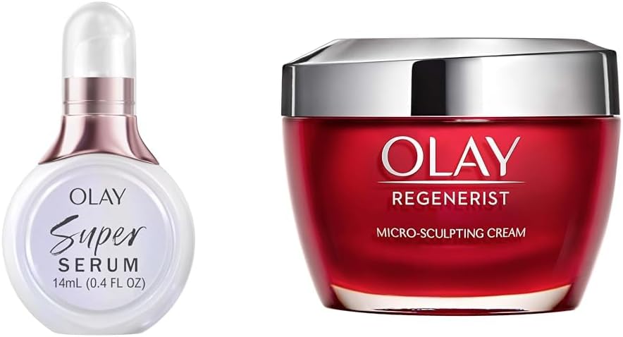 含烟酰胺、维生素 C、胶原蛋白肽、AHA 和维生素 E 的超级精华液,14 毫升,旅行装;新生塑颜微雕面霜,含维生素 B3 和烟酰胺的面部保湿霜,50 毫升