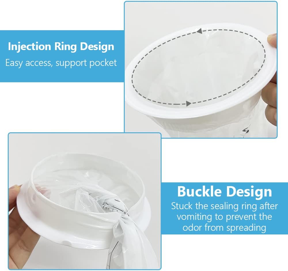 一次性呕吐袋:帮您解决公共场所不适问题,用后丢弃,免去清洁麻烦。适用范围广:适合醉酒、晕车、孕妇及病人,此外,还可以用呕吐袋处理变质食物或垃圾。防溢:大开口边缘贴合人脸,使用时不会溅到衣服或汽车上。密封操作:扭转并将袋子固定在缺口环中,有助于密封并减少气味扩散。便于携带:20个呕吐袋,容量为1500毫升。可以随身携带,您可以在酒店、出租车、飞机、旅行、疗养院、诊所等地方使用它们。
