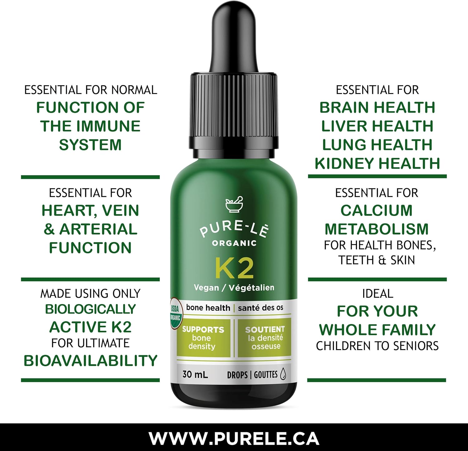 美国农业部有机维生素K2 (MK-7)滴剂,适合全家使用 - 完全生物可利用 - 速效,老少皆宜。犹太洁食认证,纯素,非转基因。无副作用 - 加拿大制造,超优质膳食补充剂