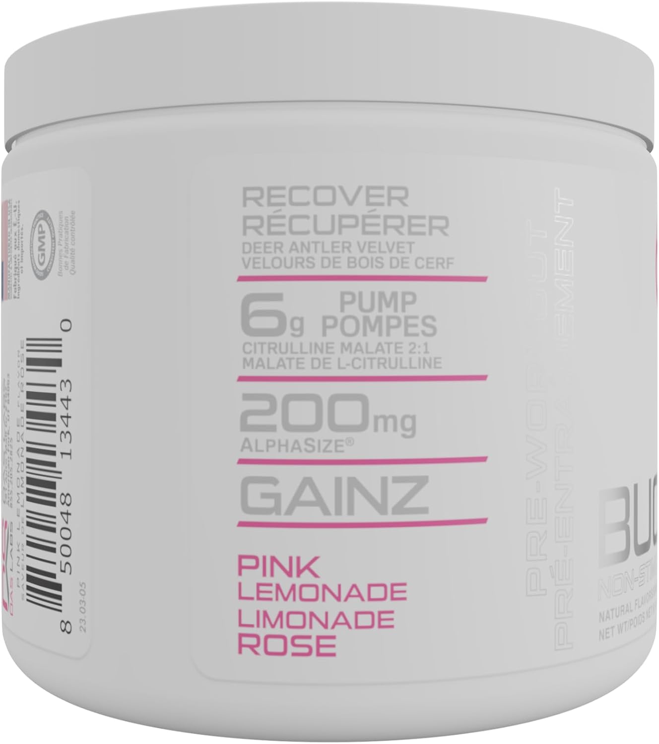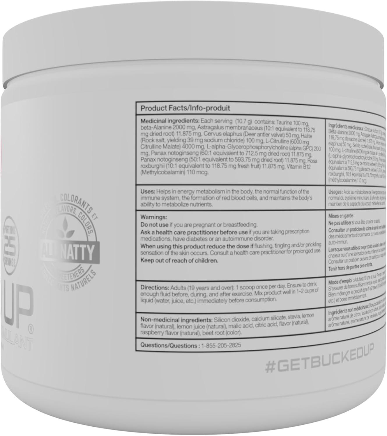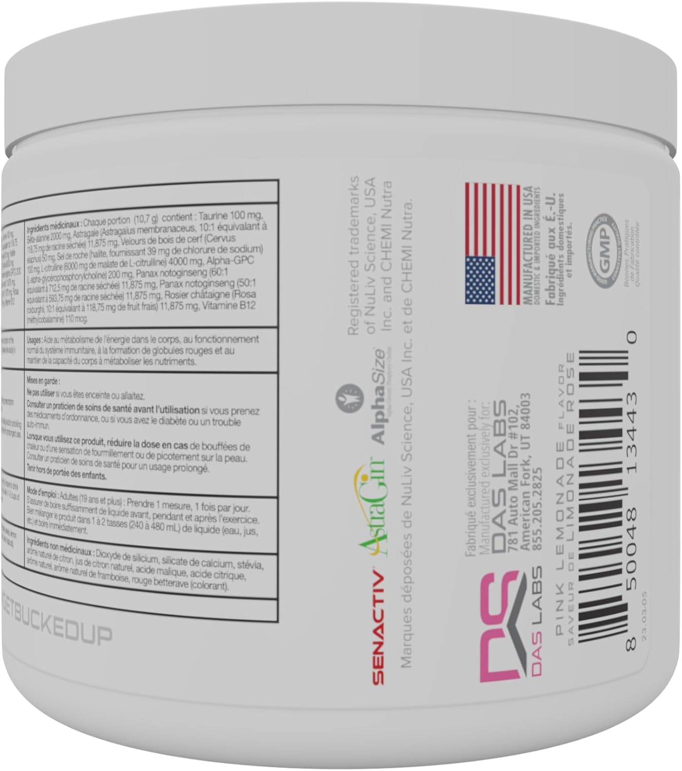 Bucked Up 无刺激运动前补充剂:提升运动表现,缓解紧张,不含咖啡因,粉红柠檬水口味,25 份