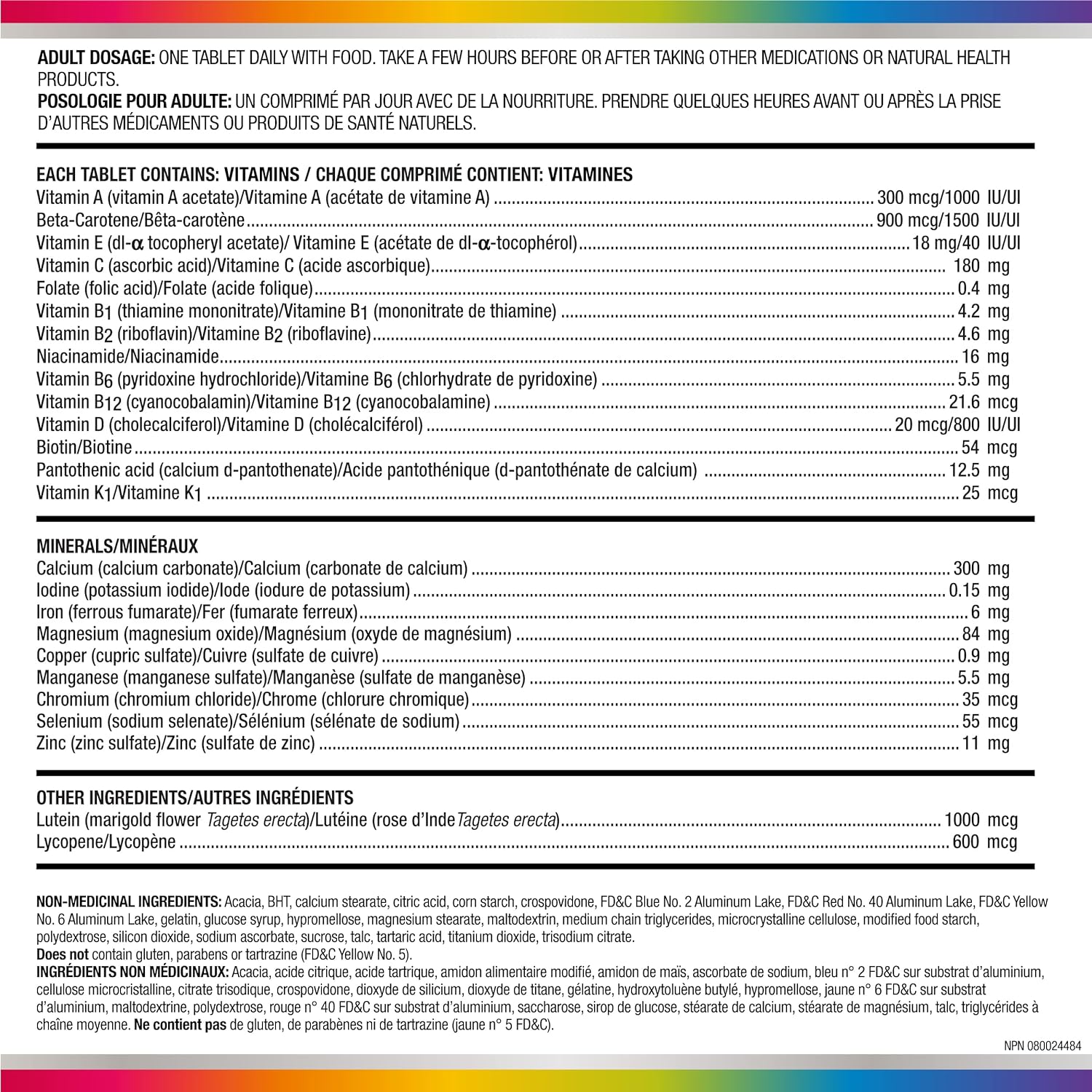 Centrum 男士复合维生素专为男士配制,富含抗氧化剂硒以及锌、镁和B族维生素,可满足成年男性的营养需求。Centrum 男士复合维生素有助于增强免疫系统,维持视力和肌肉功能,并维持身体代谢营养物质的能力。Centrum 男士复合维生素经验证不含转基因成分和麸质,其维生素和矿物质配方可从内部滋养您的身体,从而保持身体健康。凭借超过 35 年的营养科学专业知识,Centrum 是加拿大排名第一的医生推荐复合维生素品牌*和销量第一的复合维生素品牌**。本包装包含一瓶 90 粒装的 Centrum 男士复合维生素/矿物质补充剂片剂。(*基于 2020 年 3 月的 IMS Health 数据;**Centrum 的计算部分基于尼尔森通过其市场跟踪服务报告的截至 2020 年 10 月 31 日的 52 周成人维生素类别数据)