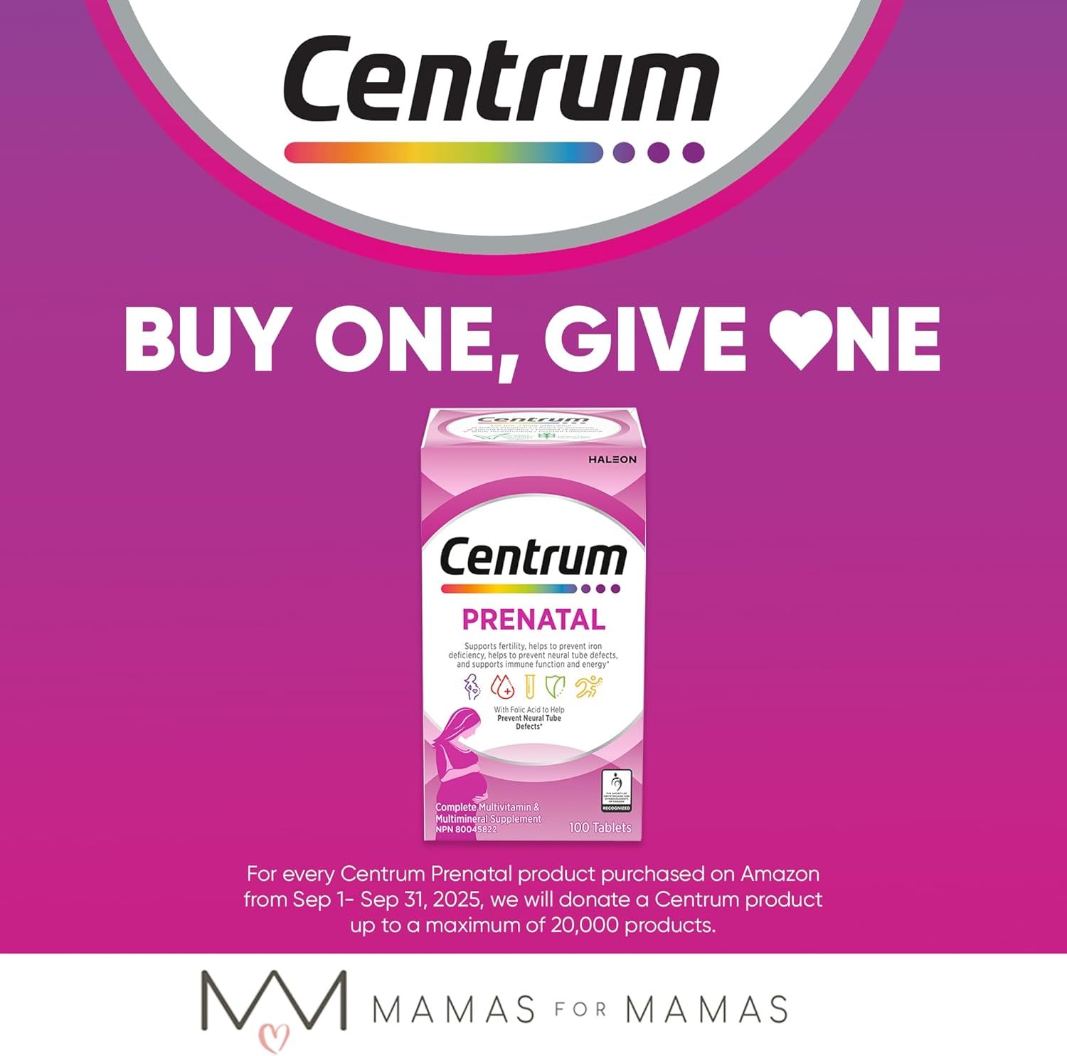 Centrum Prenatal 复合维生素专为孕前、孕中和孕后女性配制,含有 23 种必需维生素和矿物质,包括叶酸、铁、钙和维生素 D。Centrum Prenatal 经加拿大妇产科协会 (SOGC) 认证,有助于预防神经管缺陷*、增强免疫系统并维持健康的血糖水平。Centrum Prenatal 还有助于提高生育能力,缓解缺铁性贫血引起的疲劳,并富含 B 族维生素,有助于补充能量。凭借超过 35 年的营养科学专业知识,Centrum 是医生推荐的首选复合维生素品牌**,也是加拿大销量第一的复合维生素品牌***。本包装包含一瓶 100 片装的 Centrum Prenatal 复合维生素补充剂。 (* 加拿大卫生部,《这是你的健康——叶酸和出生缺陷》,2013 年 11 月 4 日;** 根据 2020 年 3 月的 IMS Health 数据;*** Centrum 的计算部分基于尼尔森通过其市场跟踪服务报告的截至 2020 年 10 月 31 日的 52 周期间成人维生素类别的数据)