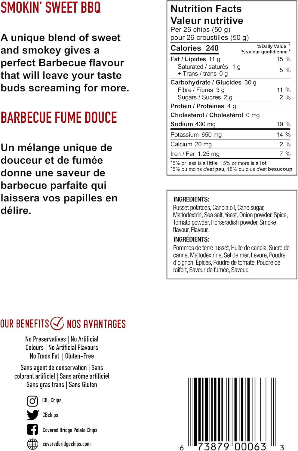 Covered Bridge 薯片 - Smokin' 甜味烧烤薯片,170 克装 - 不含麸质,犹太洁食认证,采用深色赤褐色土豆烹制,加拿大制造,12 片装,170 克