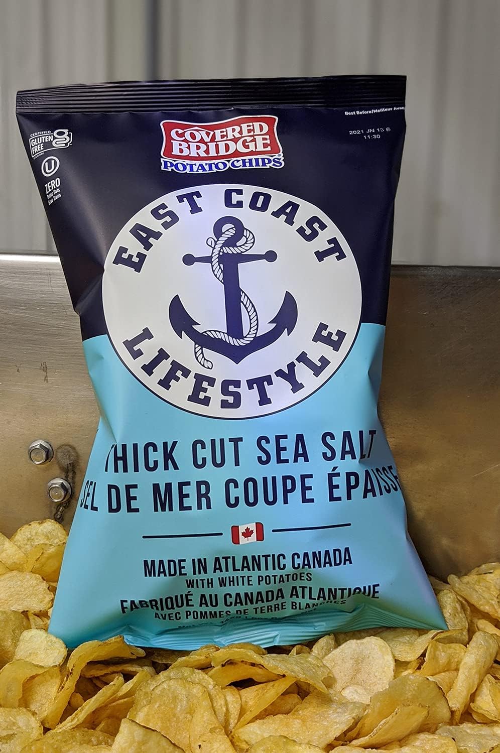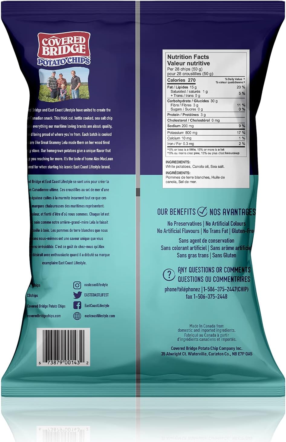 Covered Bridge 薯片 - East Coast Lifestyle 厚切海盐薯片 - 无麸质,犹太洁食认证,采用圆形白土豆烹制,加拿大制造,12 片装,每袋 142 克