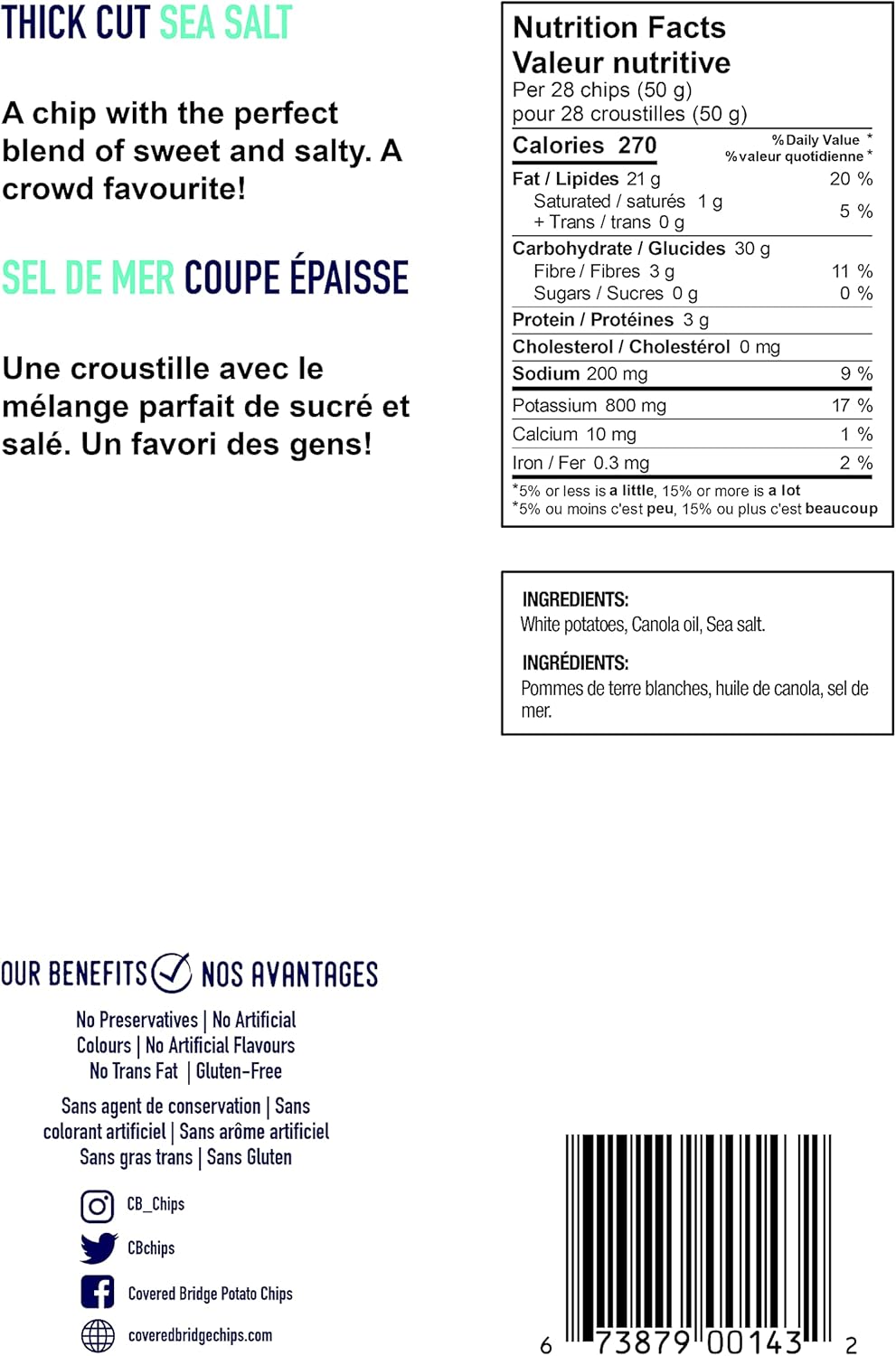 Covered Bridge 薯片 - East Coast Lifestyle 厚切海盐薯片 - 无麸质,犹太洁食认证,采用圆形白土豆烹制,加拿大制造,12 包,每包 142 克