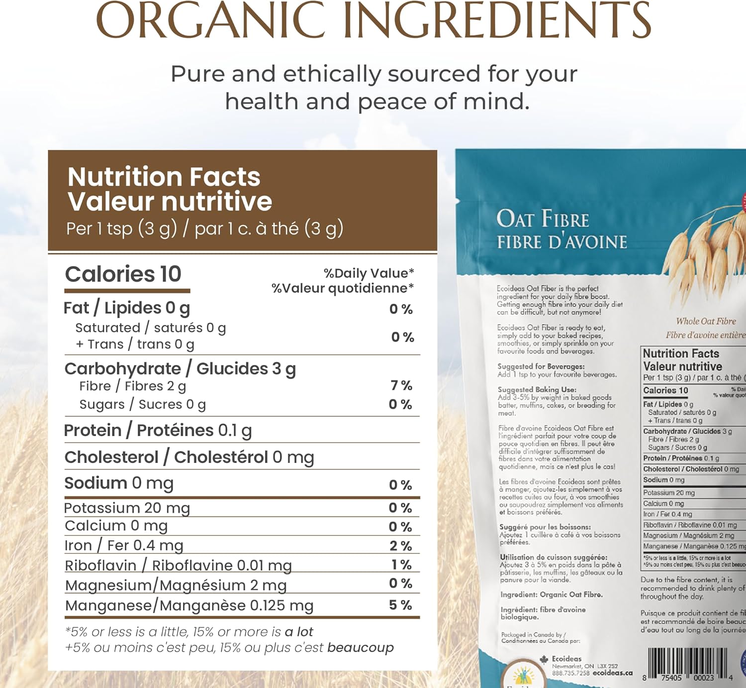 Ecoideas 燕麦纤维是您每日补充纤维的完美选择。采用 100% 加拿大无麸质燕麦制成,在日常饮食中摄入足够的纤维可能并非易事,但现在不再如此!