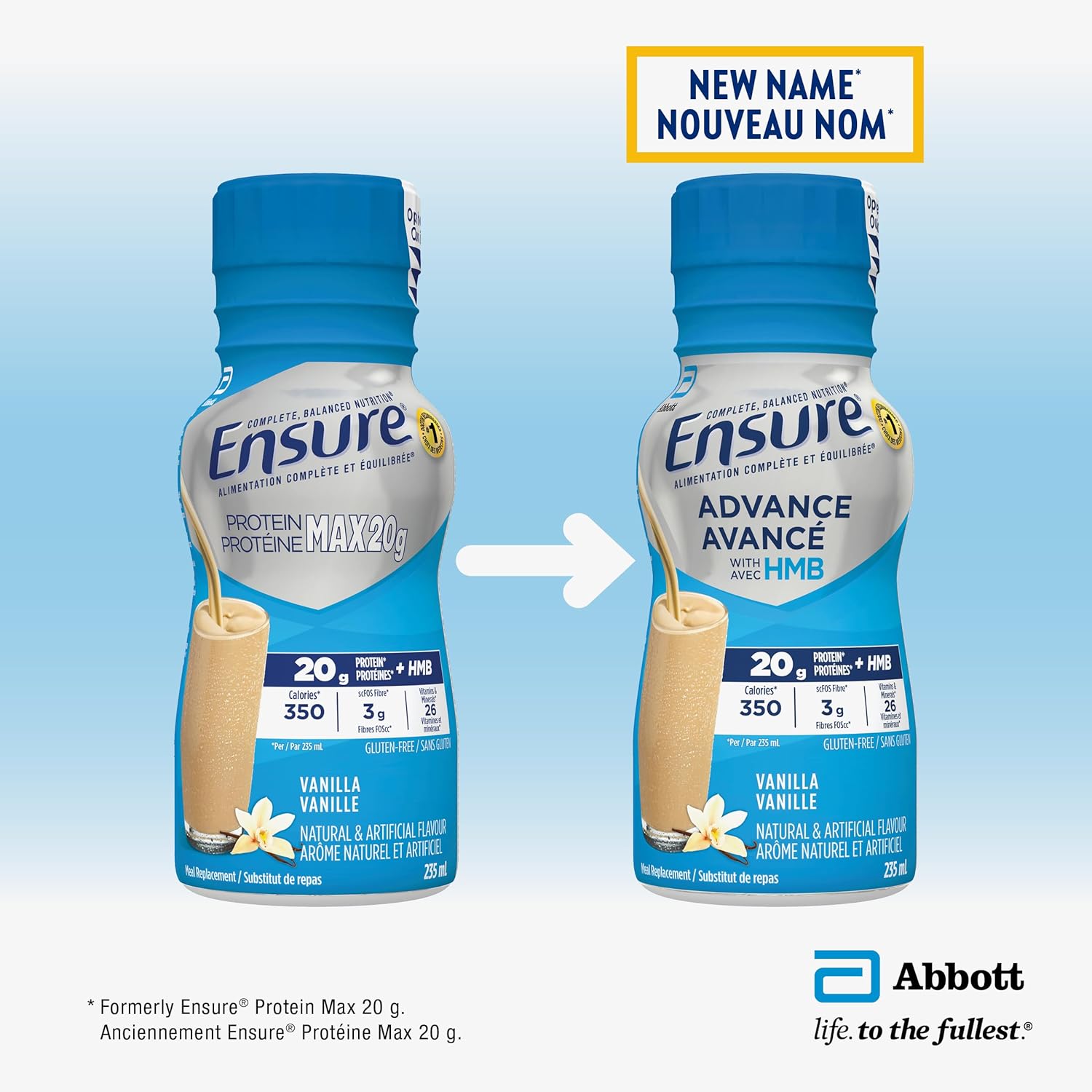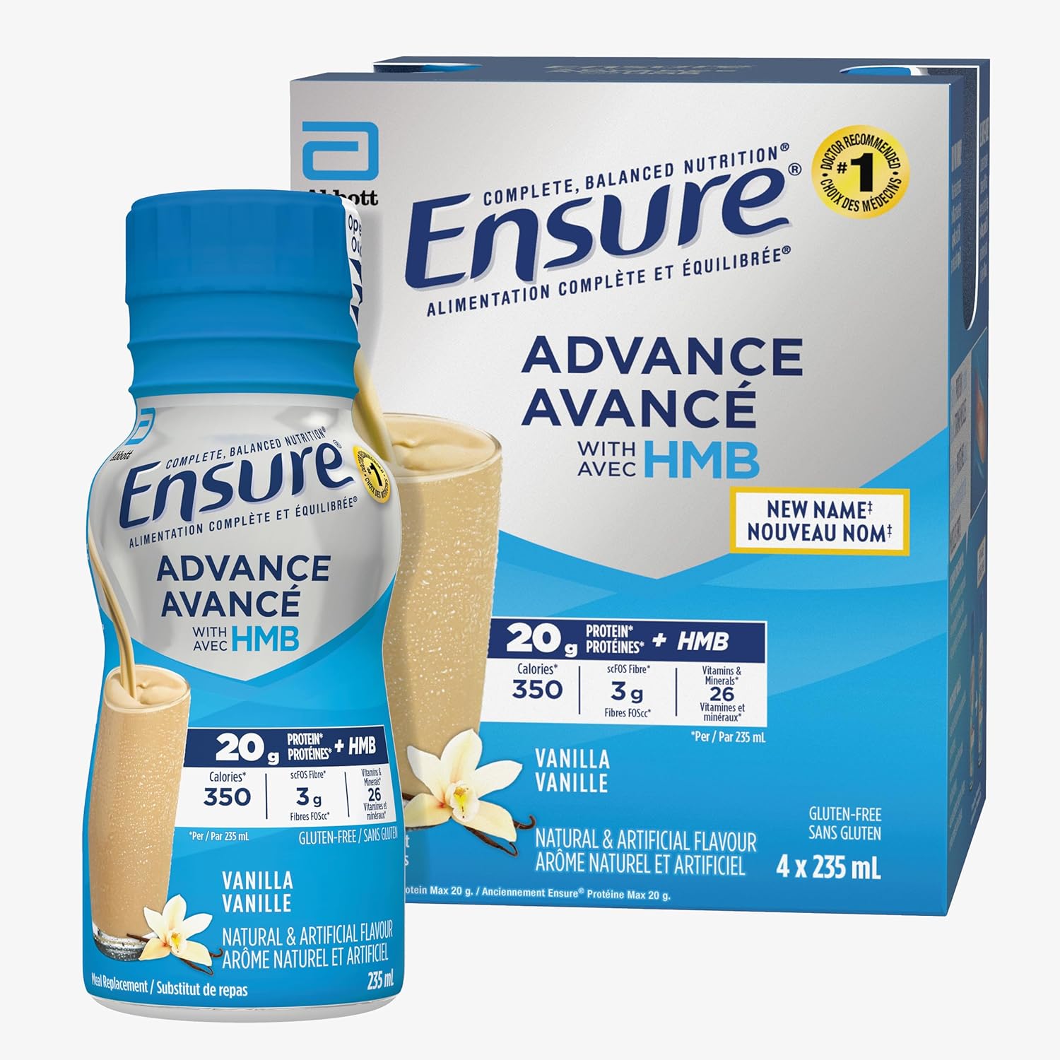 Ensure Advance(原名 Ensure Protein Max 20 克)香草味,提供全面均衡的营养,蛋白质含量是 Ensure Regular 的两倍,有助于强健肌肉。它可在两餐之间或随餐服用,或适量代餐。每瓶含有 20 克蛋白质和 26 种维生素和矿物质,帮助您保持健康、活力和精力充沛。Ensure Advance 采用方便密封的瓶身设计,不含麸质,适合乳糖不耐症患者。立即订购医生推荐的口服营养补充剂第一品牌!