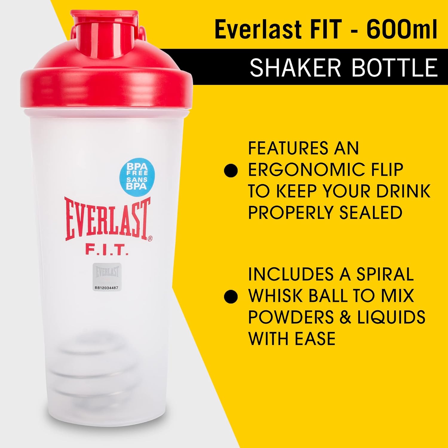 Everlast FIT 600ML 摇摇杯 - 防漏 - 摇摇杯带螺旋搅拌球,不含 BPA/DEHP,易于清洁,非常适合混合蛋白质奶昔。(红色)