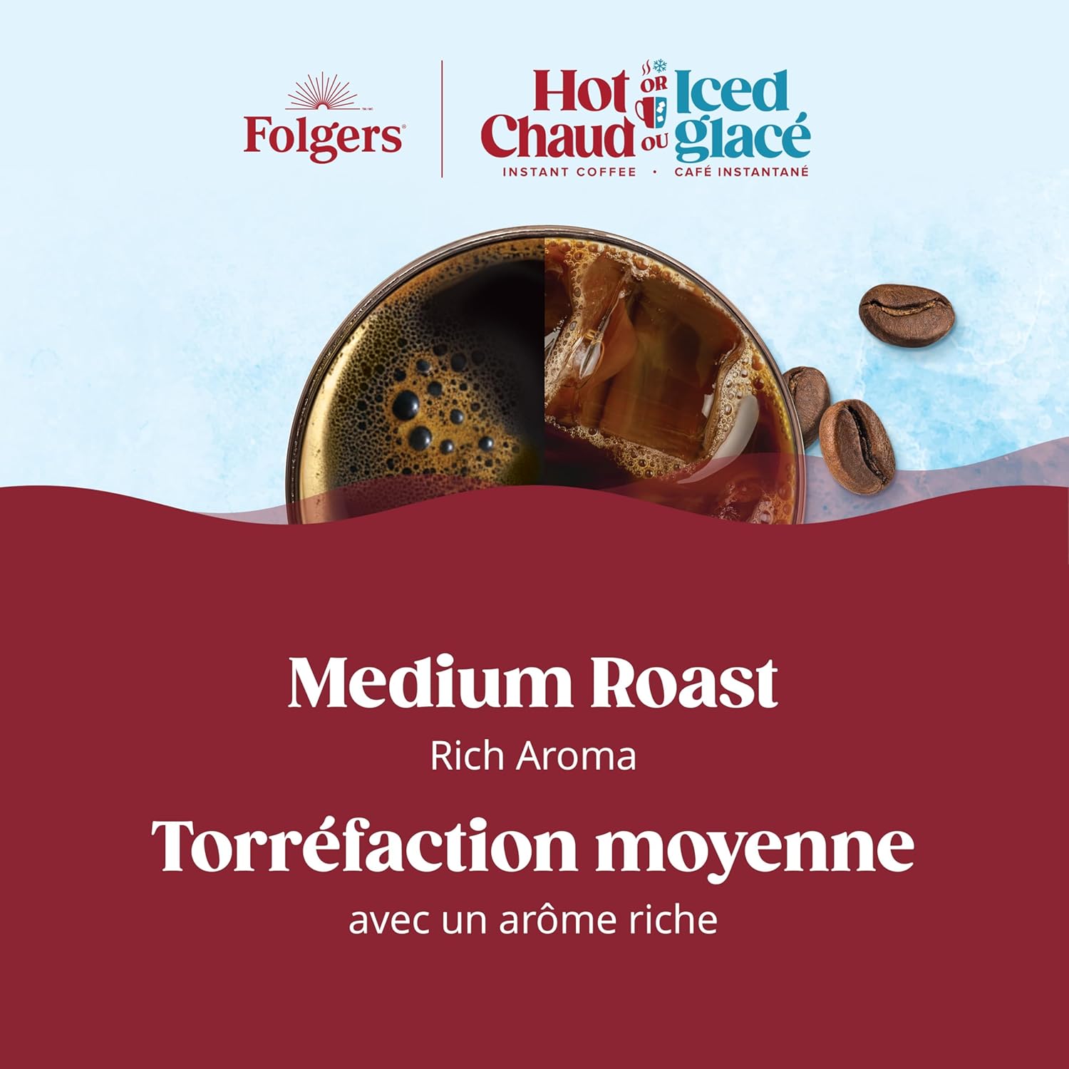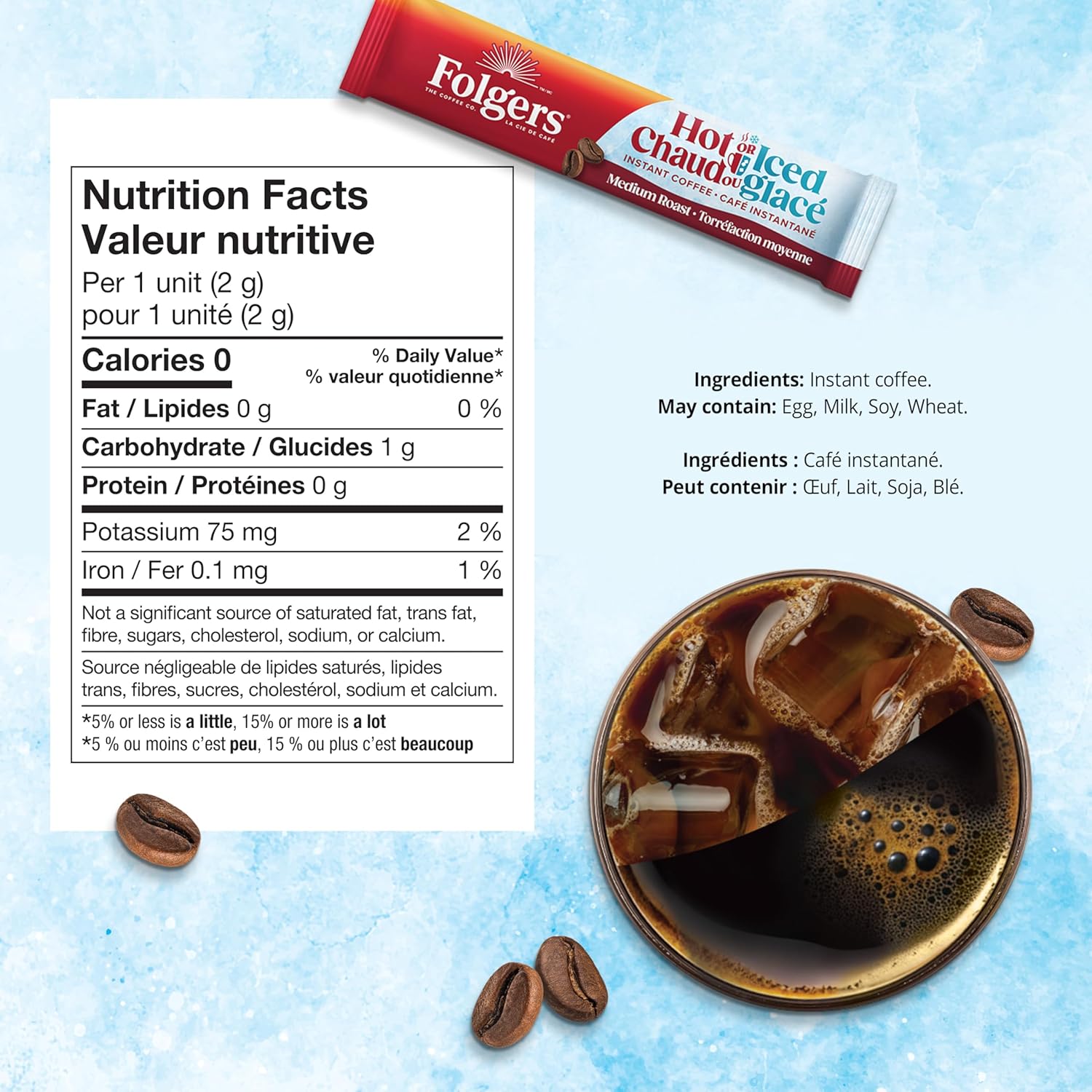 Folgers 速溶咖啡包,适用于热饮或冷饮混合饮料,速溶经典中度烘焙咖啡,7 包(12 包)