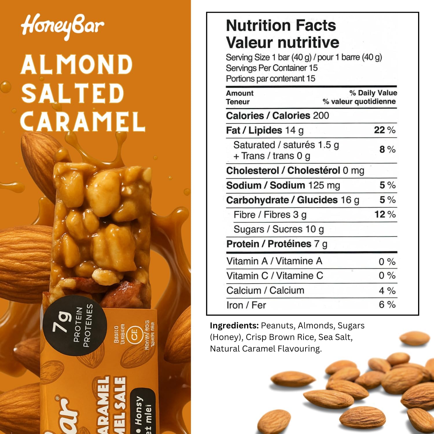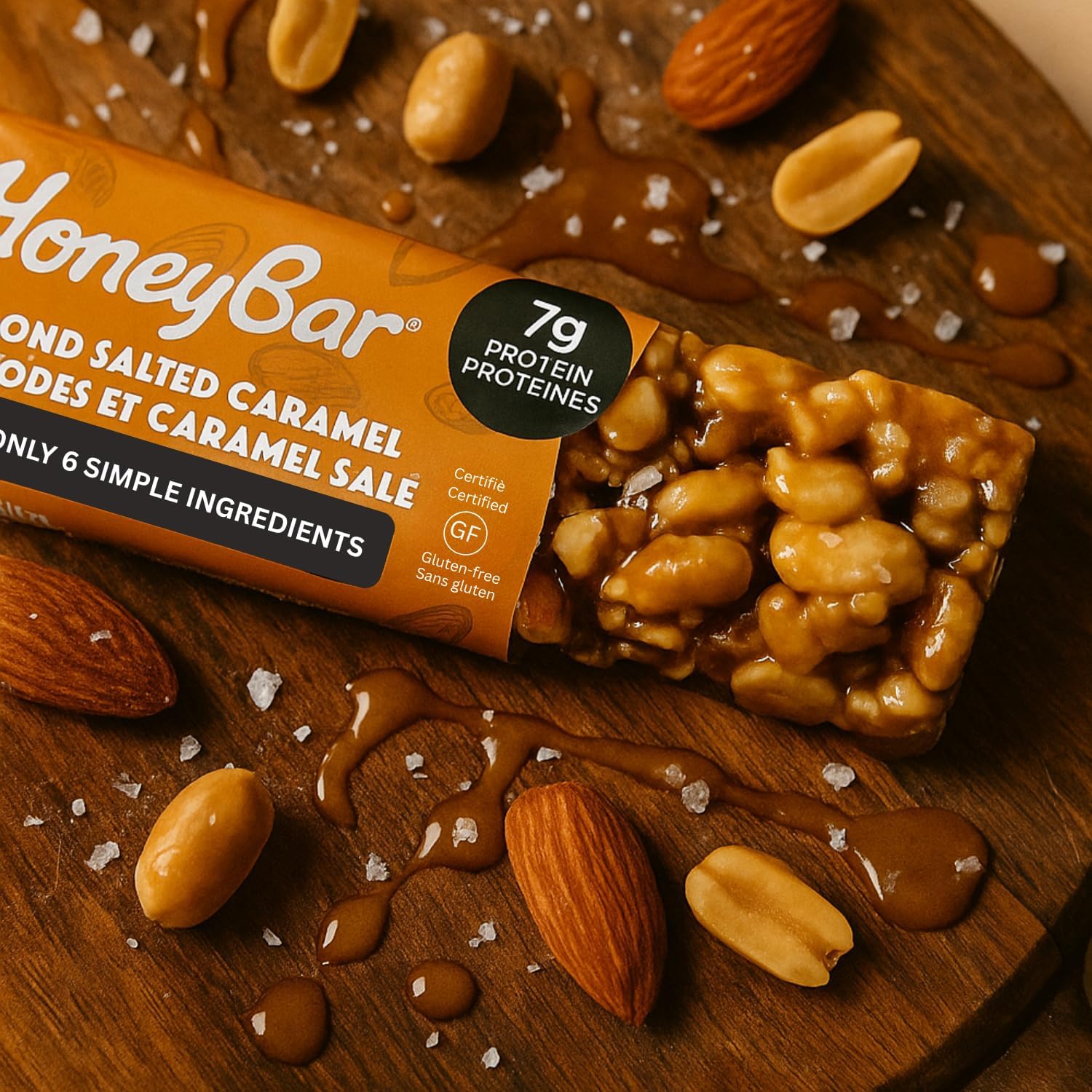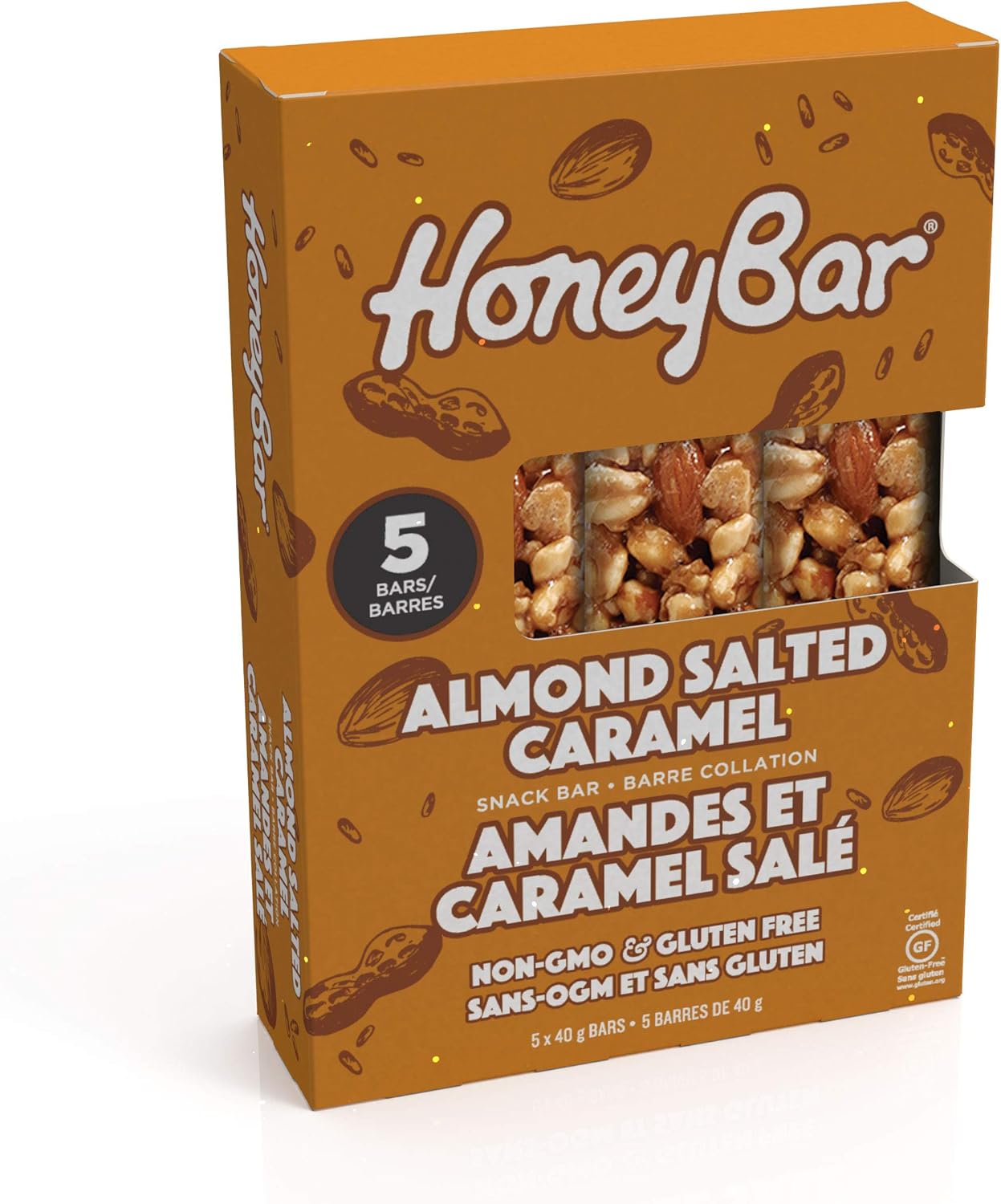 HoneyBar 零食棒,杏仁咸焦糖,无麸质,非转基因,素食,40 克,杏仁咸焦糖,5 条