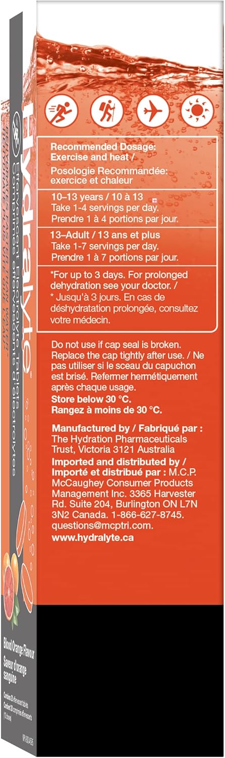 Hydralyte 电解质片 | 血橙味电解质 | 锻炼前和锻炼后补水解决方案,可提高性能并最大程度地恢复 | (每份 2 片,40 片)