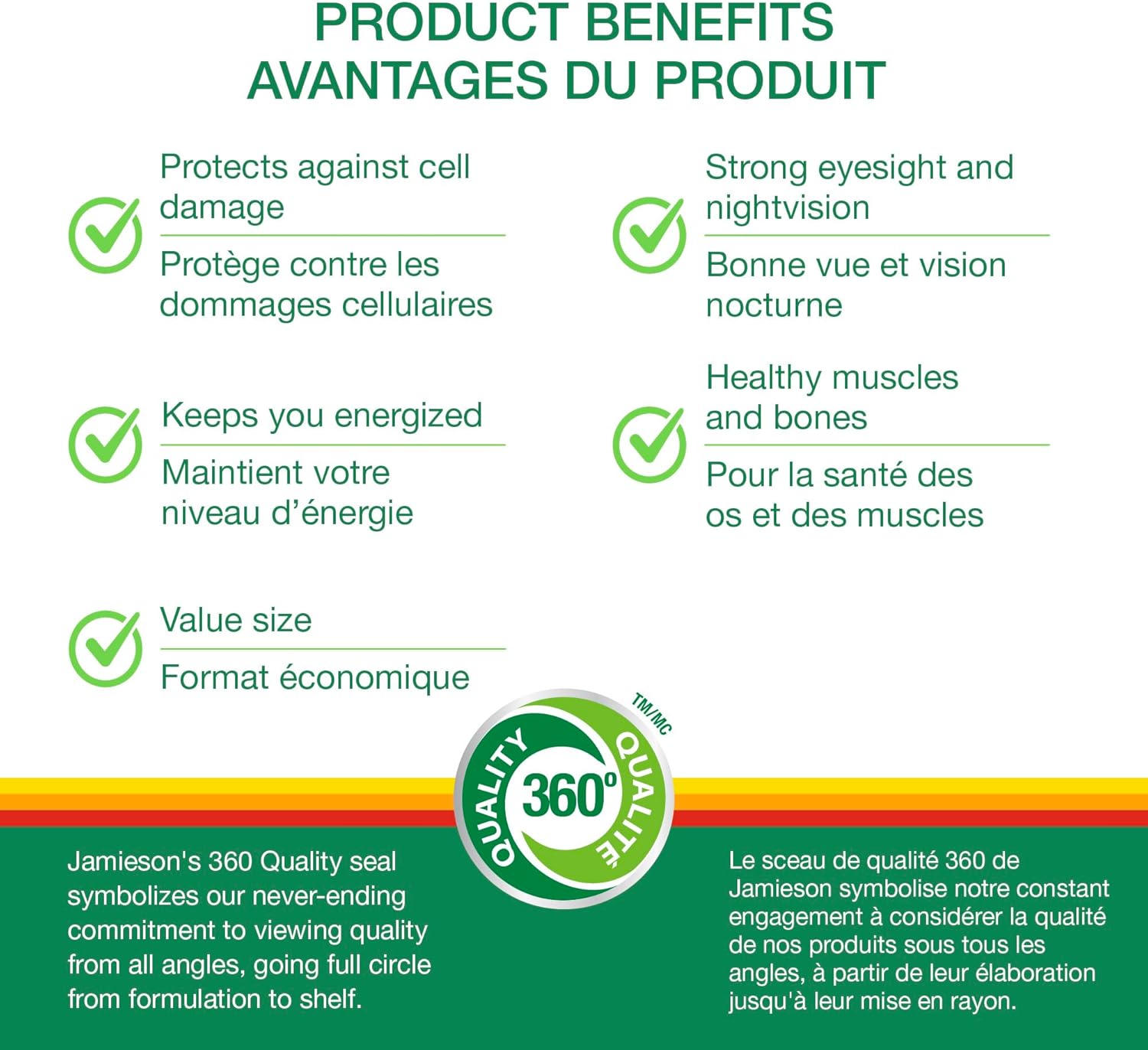 Jamieson 100% 男士复合维生素,含西伯利亚人参、番茄红素和硒。支持眼部健康、提升能量、增强免疫力和日常健康,无麸质,每日一片,160 粒胶囊