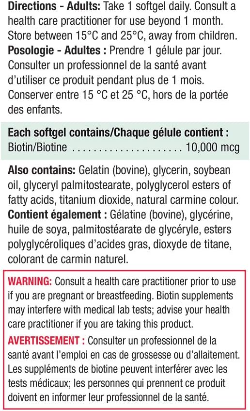 Jamieson 生物素 10,000 微克超强效软胶囊 - 超值装,无麸质,90 粒(1 包)和 Laboratories 锌 50 毫克,100 粒(1 包)