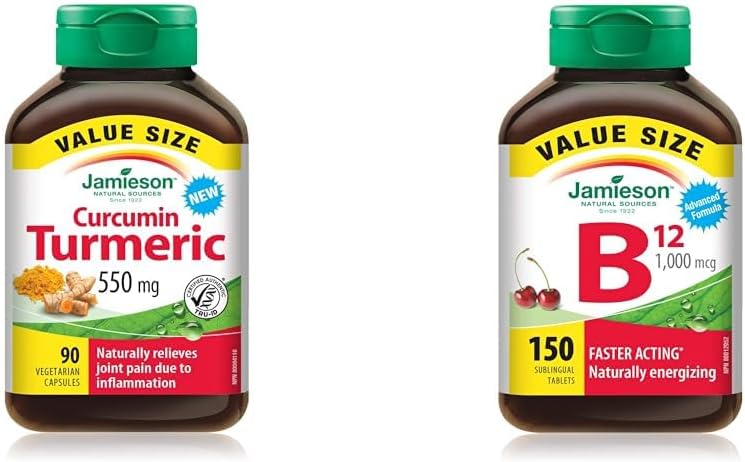 Jamieson 姜黄素,90 片 - 超值装 Jamieson 超强效姜黄素姜黄有助于缓解关节疼痛,减少身体对压力和损伤的炎症反应,同时提供抗氧化剂,维持身体健康。这款独特配方富含加拿大卫生部批准的最高效力的姜黄素(姜黄素中的活性药用成分)。Jamieson 维生素 B12 甲钴胺 1,000 微克速溶片 - 超值装 Jamieson 维生素 B12 1,000 微克速溶舌下片富含维生素 B12,有助于支持红细胞生成以及碳水化合物、脂肪和蛋白质的代谢,提供天然的能量补充效果。