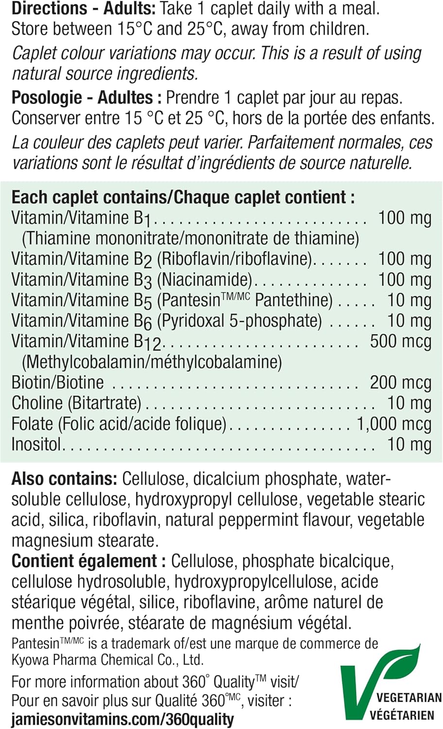 Jamieson B Complex 100 缓释片采用高效配方,全天为您提供必需的 B 族维生素。这款维生素 B 复合物可帮助您的身体将碳水化合物、蛋白质和脂肪转化为能量,并自然缓解压力症状。