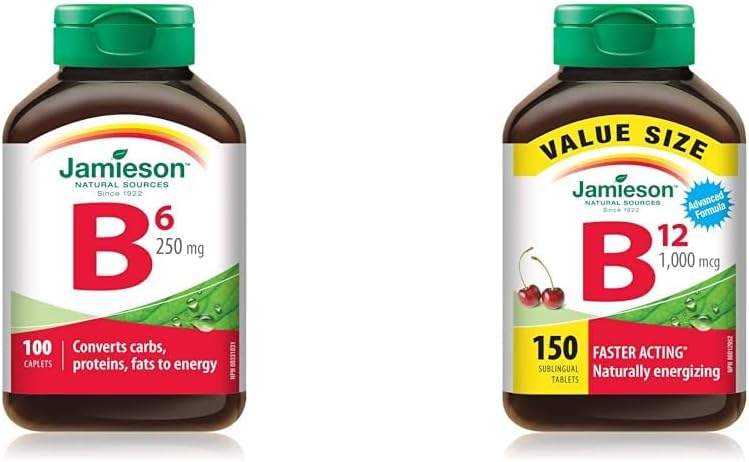 Jamieson 维生素 B6 吡哆醇 250 毫克,100 片(1 包)和维生素 B12 甲钴胺 1,000 微克速溶片 - 超值装