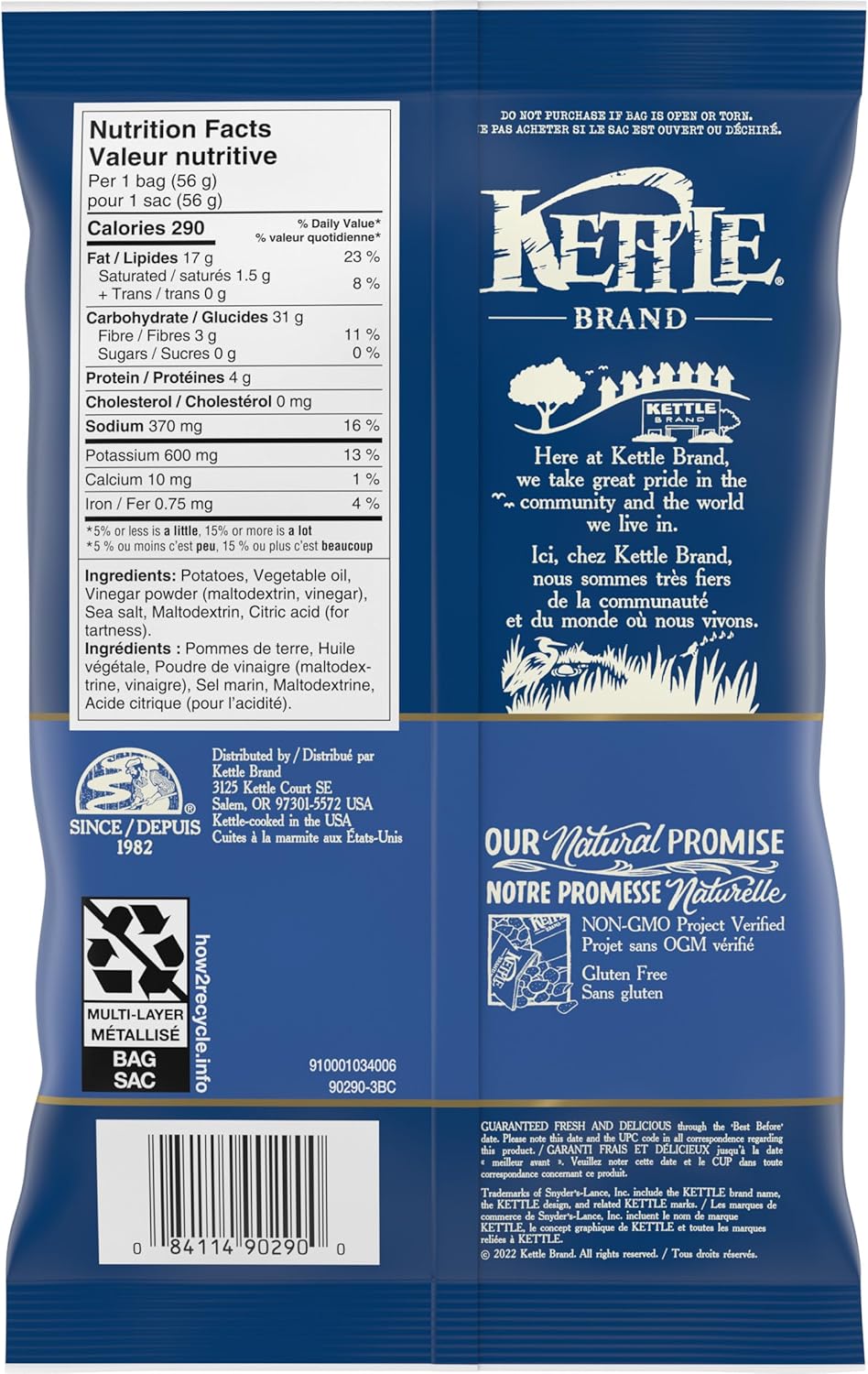 史上最棒的全心全意薯片!Kettle Chips 已有 40 多年历史,品质卓越,口味浓郁。