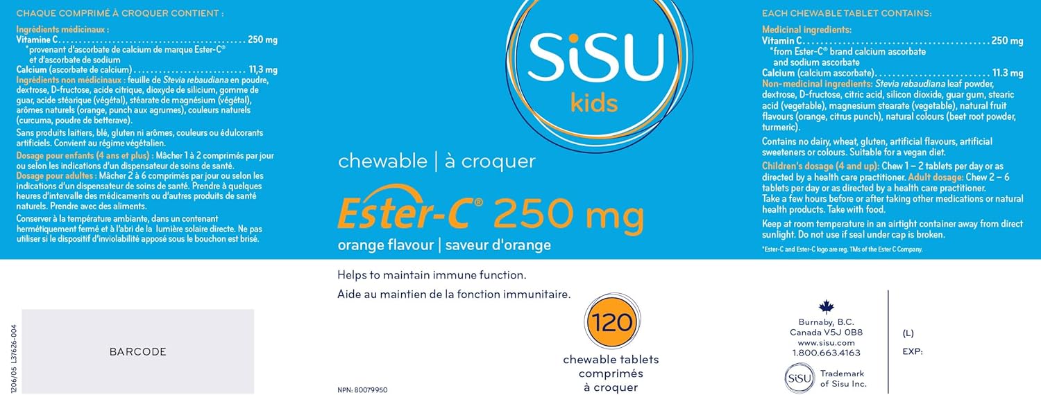 儿童酯化维生素C® 250毫克咀嚼片,橙味