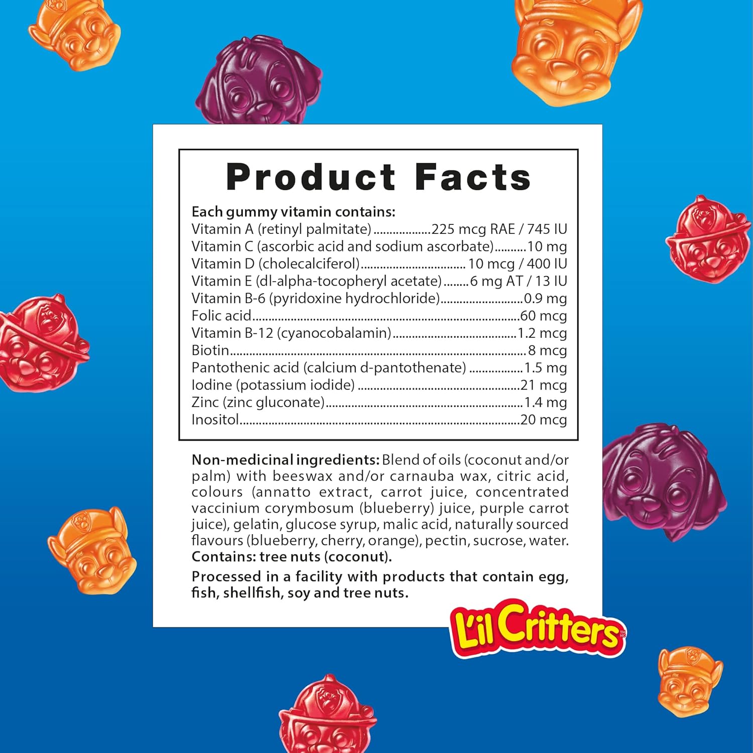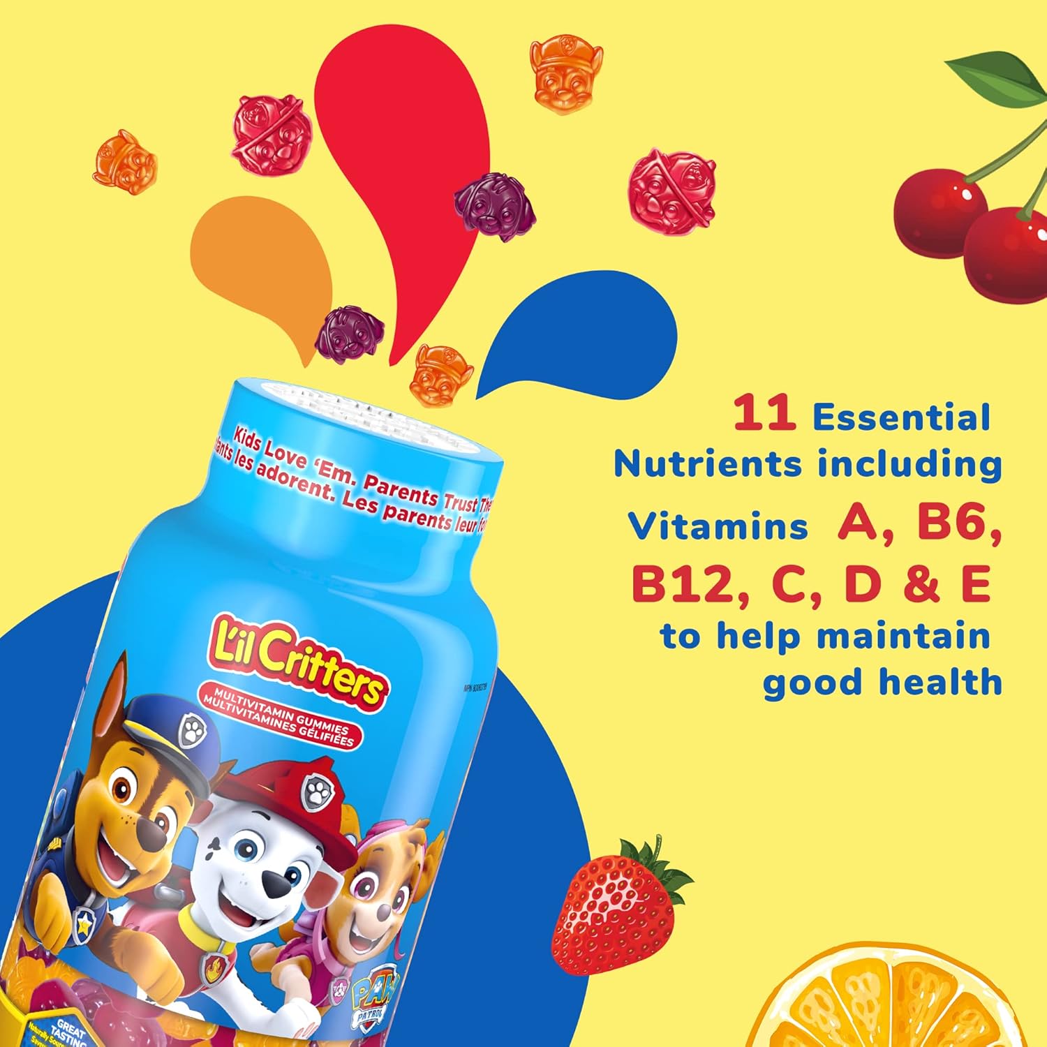 L'il Critters Paw Patrol 儿童复合维生素软糖,11 种必需营养素,天然色素和 5 种美味口味,190 粒(3 个月用量),包装可能有所不同