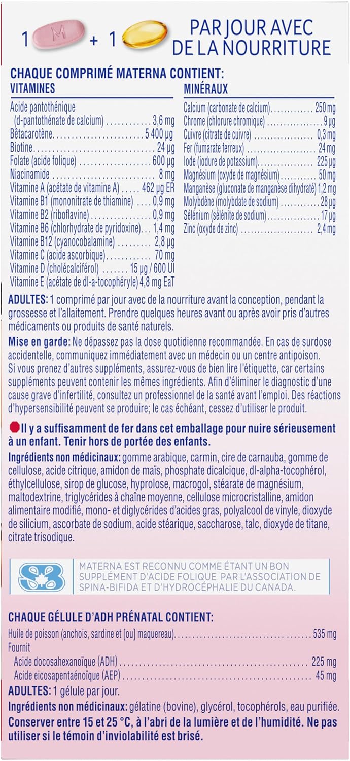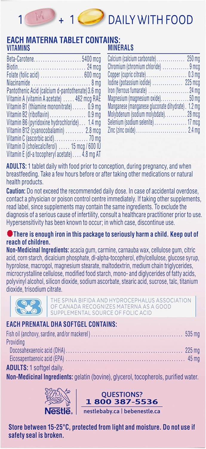 MATERNA 产前复合维生素(含 DHA)组合装,片剂和软胶囊,100% 叶酸每日建议摄入量,127 克