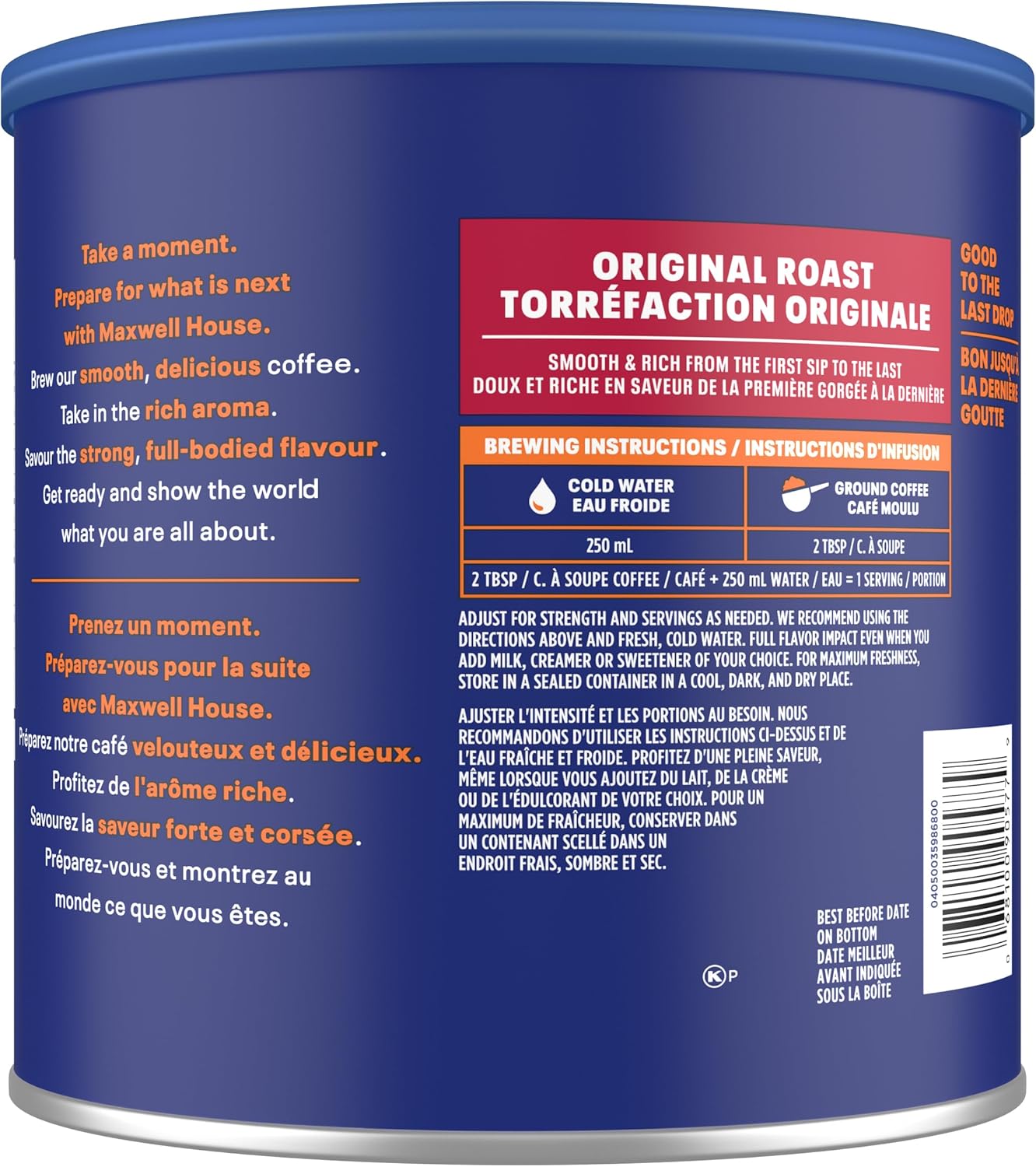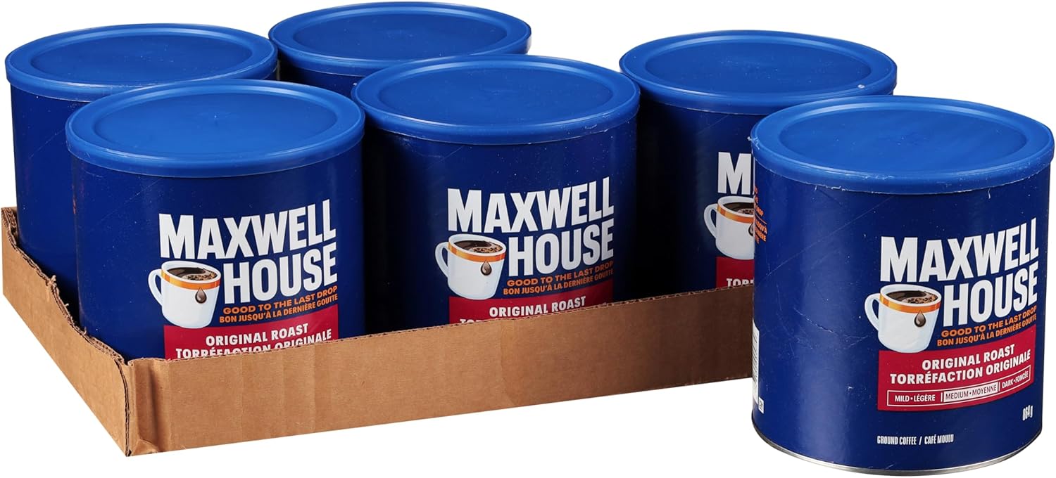 麦斯威尔中度原味烘焙咖啡粉,864 克罐装(6 罐装)