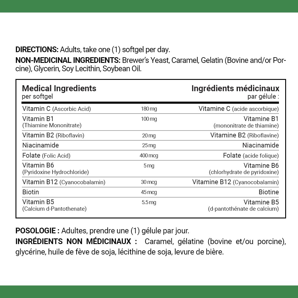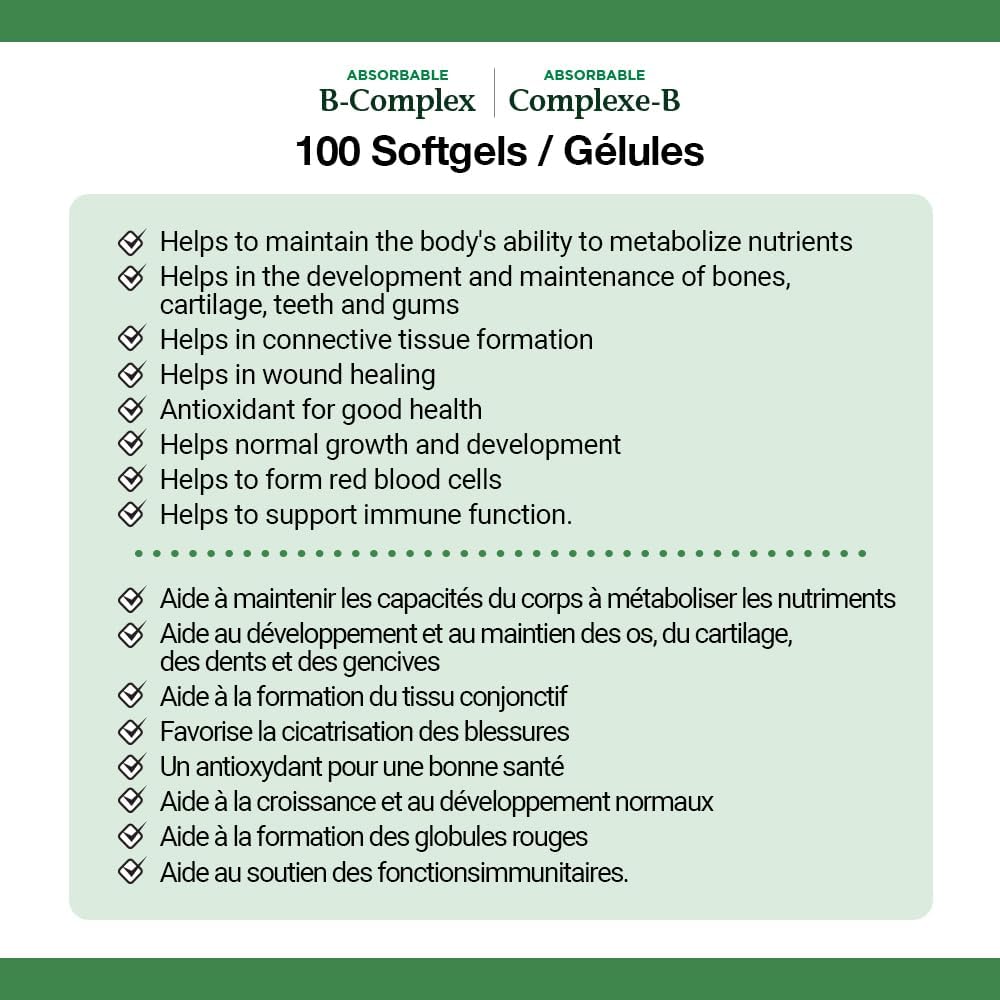 B 族维生素由多种维生素组成,可帮助身体代谢碳水化合物、脂肪和蛋白质,并维持整体健康。