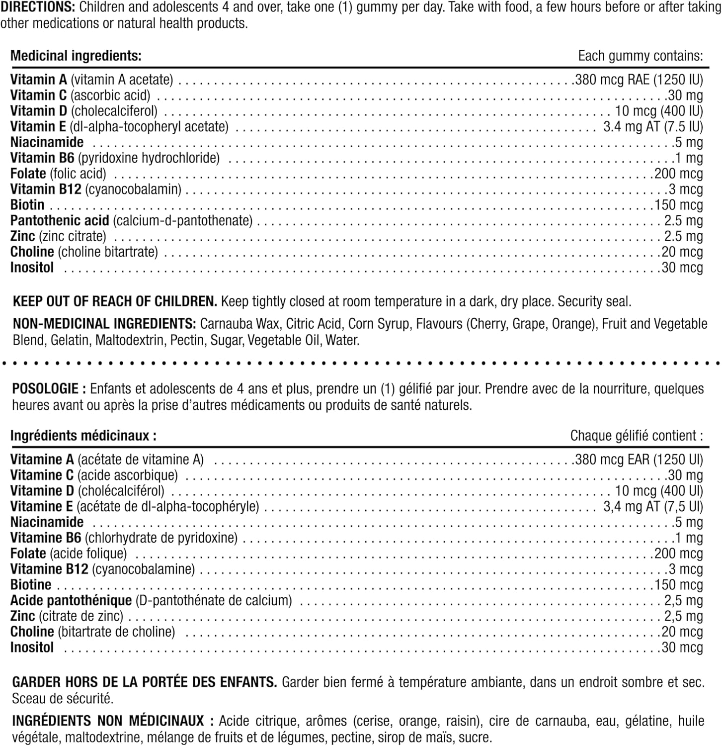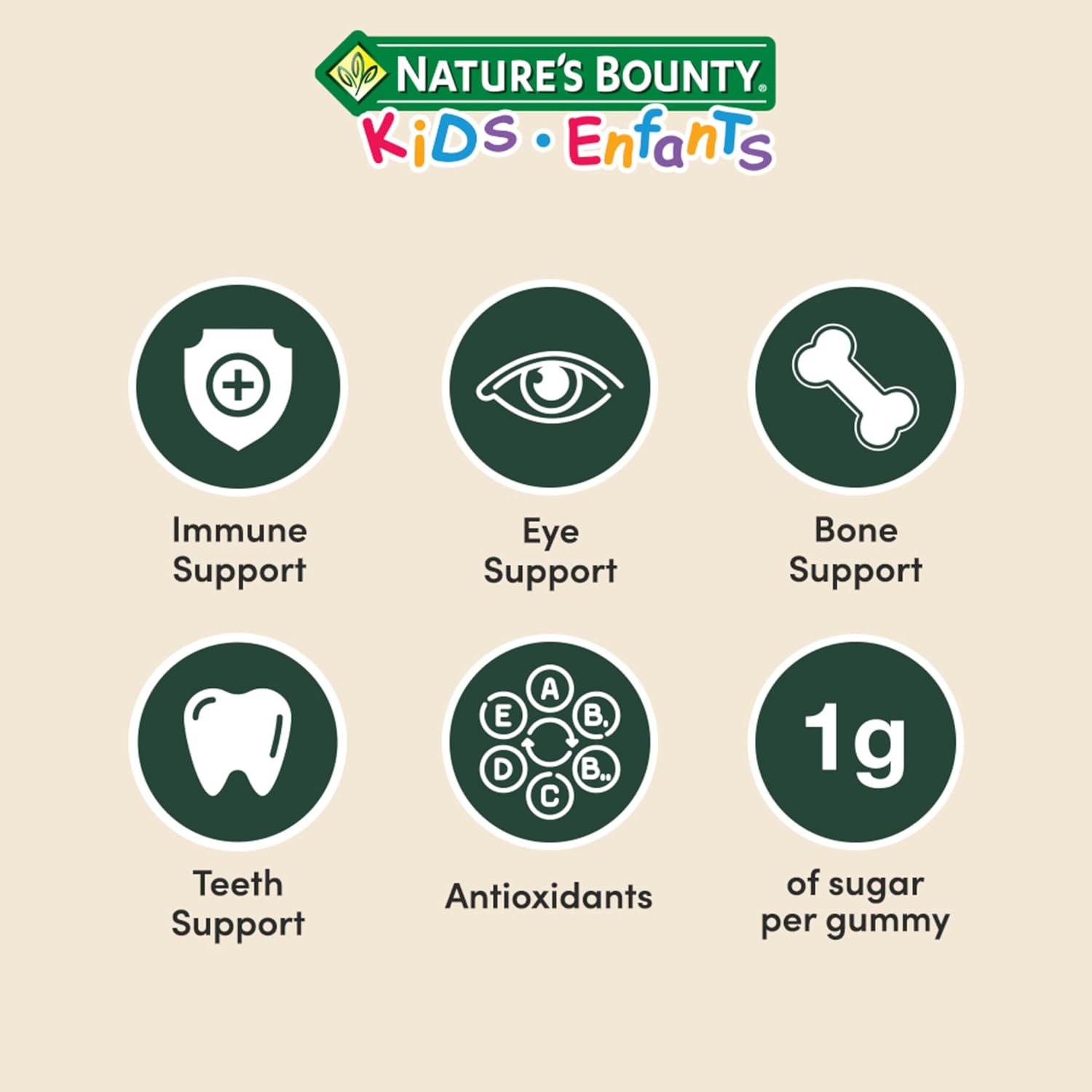 40 多年来,NATURE'S BOUNTY 始终以您为中心,研发维生素和营养补充剂。您服用维生素是因为想帮助身体保持最佳状态——何必纠结于其他品牌的维生素呢?今天就来试试 NATURE'S BOUNTY 吧!NATURE'S BOUNTY 迪士尼·皮克斯《汽车总动员》儿童复合维生素有助于维持身体健康。它们能够增强免疫功能、维护眼部健康,并呵护牙齿和骨骼。这些软糖富含抗氧化剂,每粒仅含 1 克糖,不含麸质,并有樱桃味、葡萄味和橙味三种美味口味可供选择。4 岁及以上儿童和青少年每日服用一 (1) 粒软糖。请与食物同服,并在服用其他药物或天然保健品前或后几小时服用。