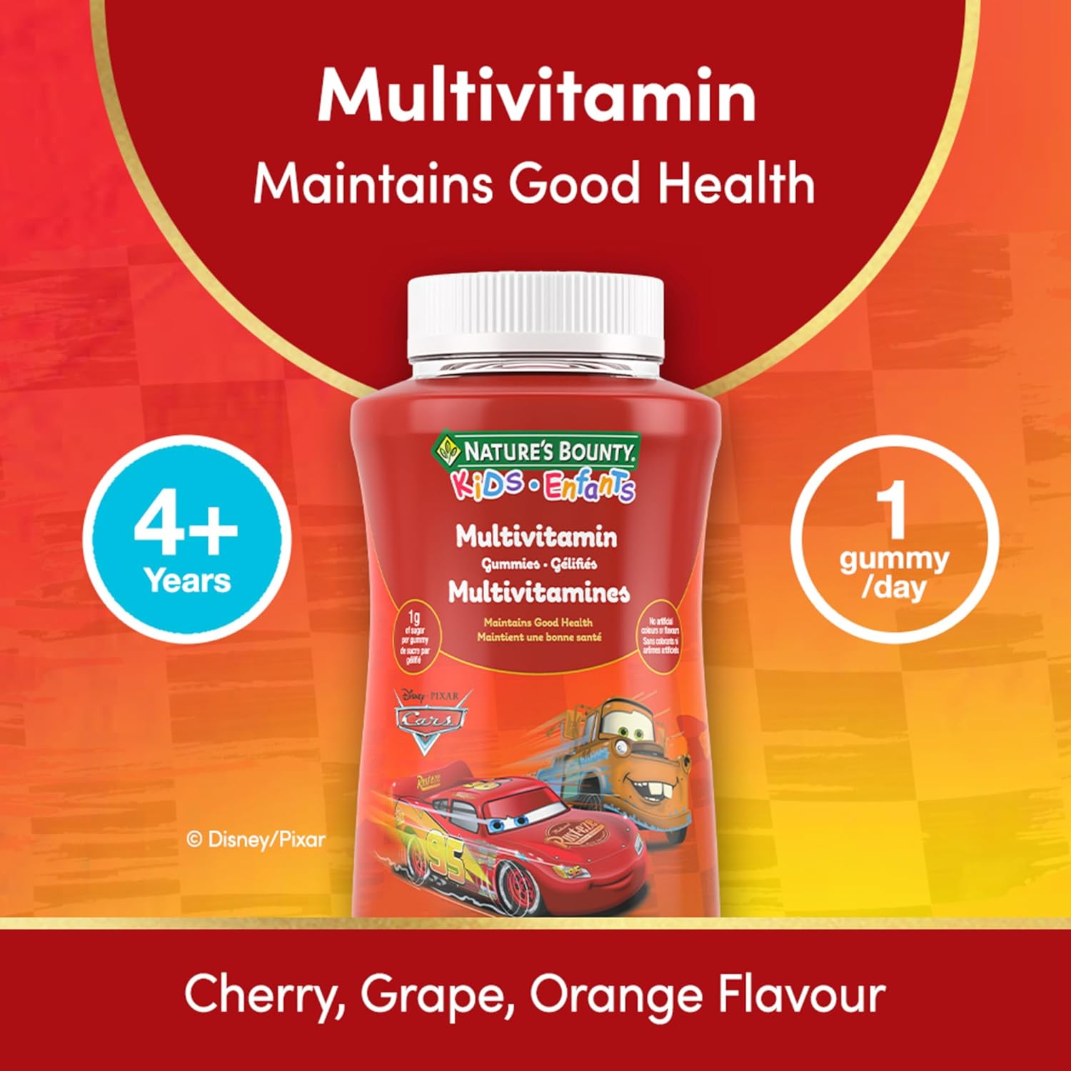 自然之宝儿童复合维生素,迪士尼皮克斯汽车,每粒软糖仅含 1 克糖,支持免疫系统、眼部健康、骨骼和牙齿,抗氧化剂来源,无麸质,水果味软糖,150 粒
