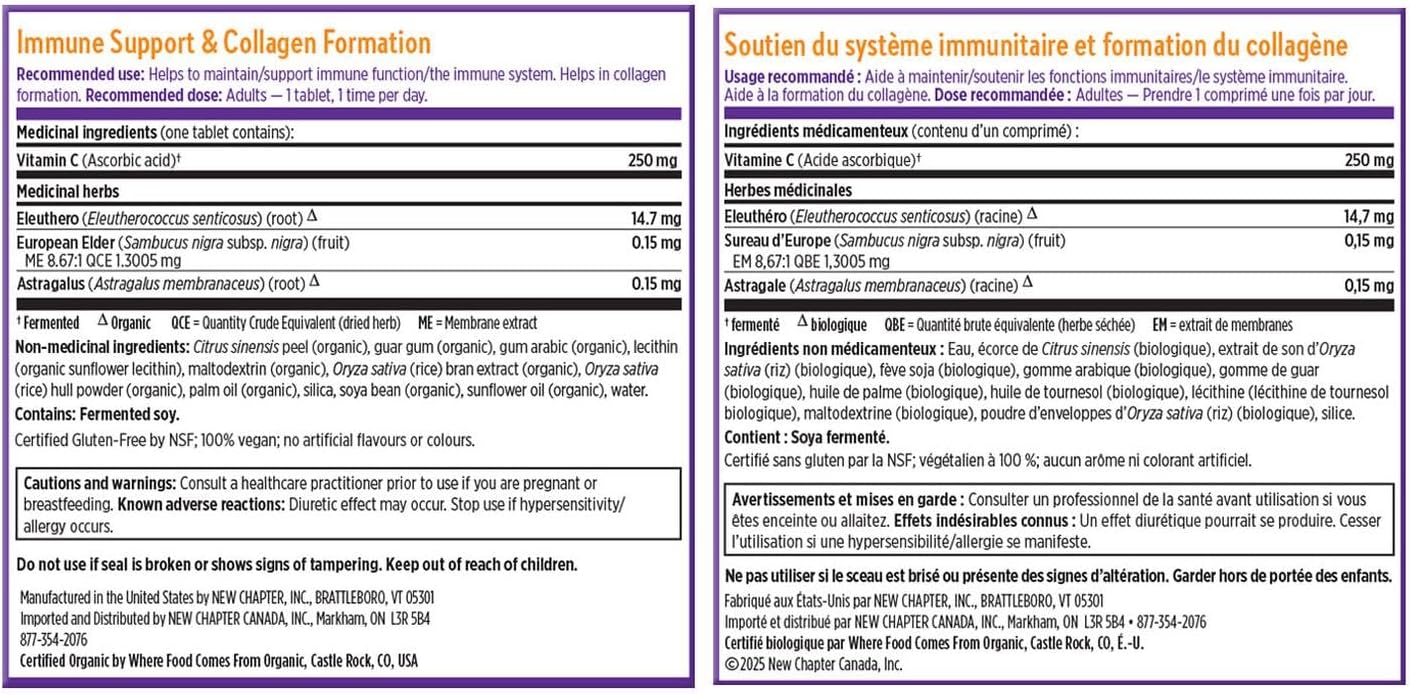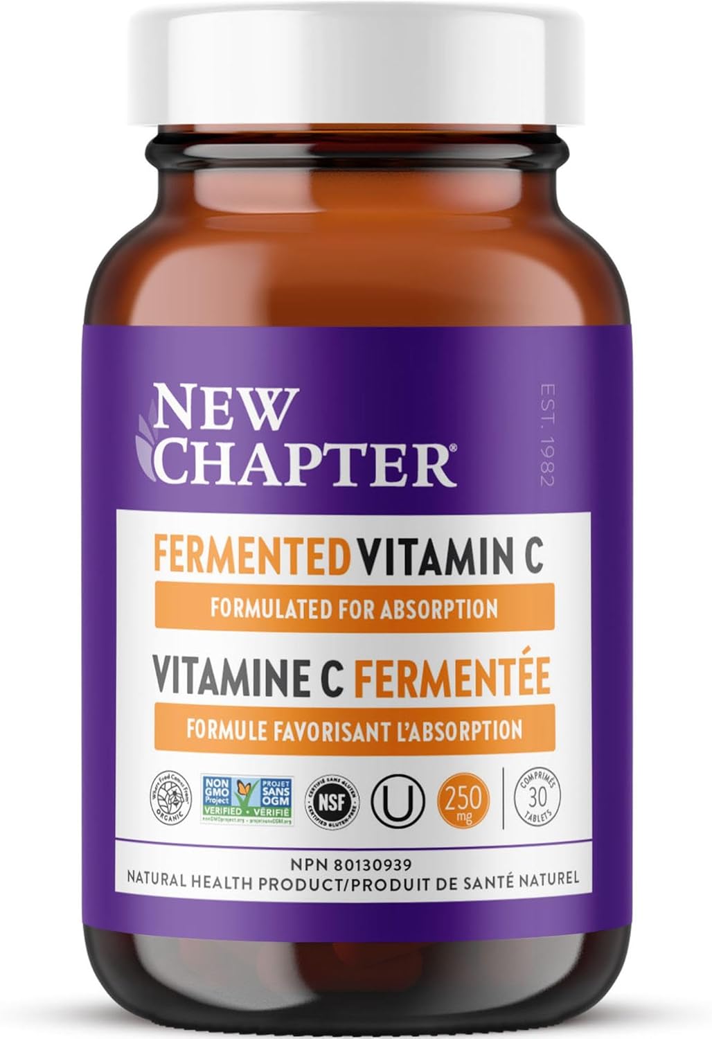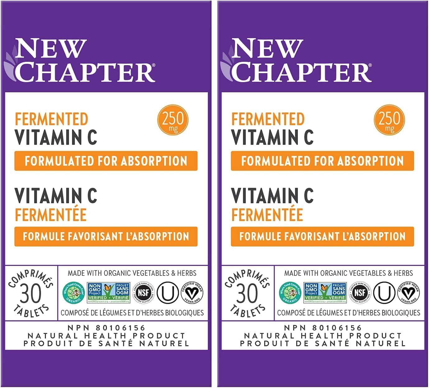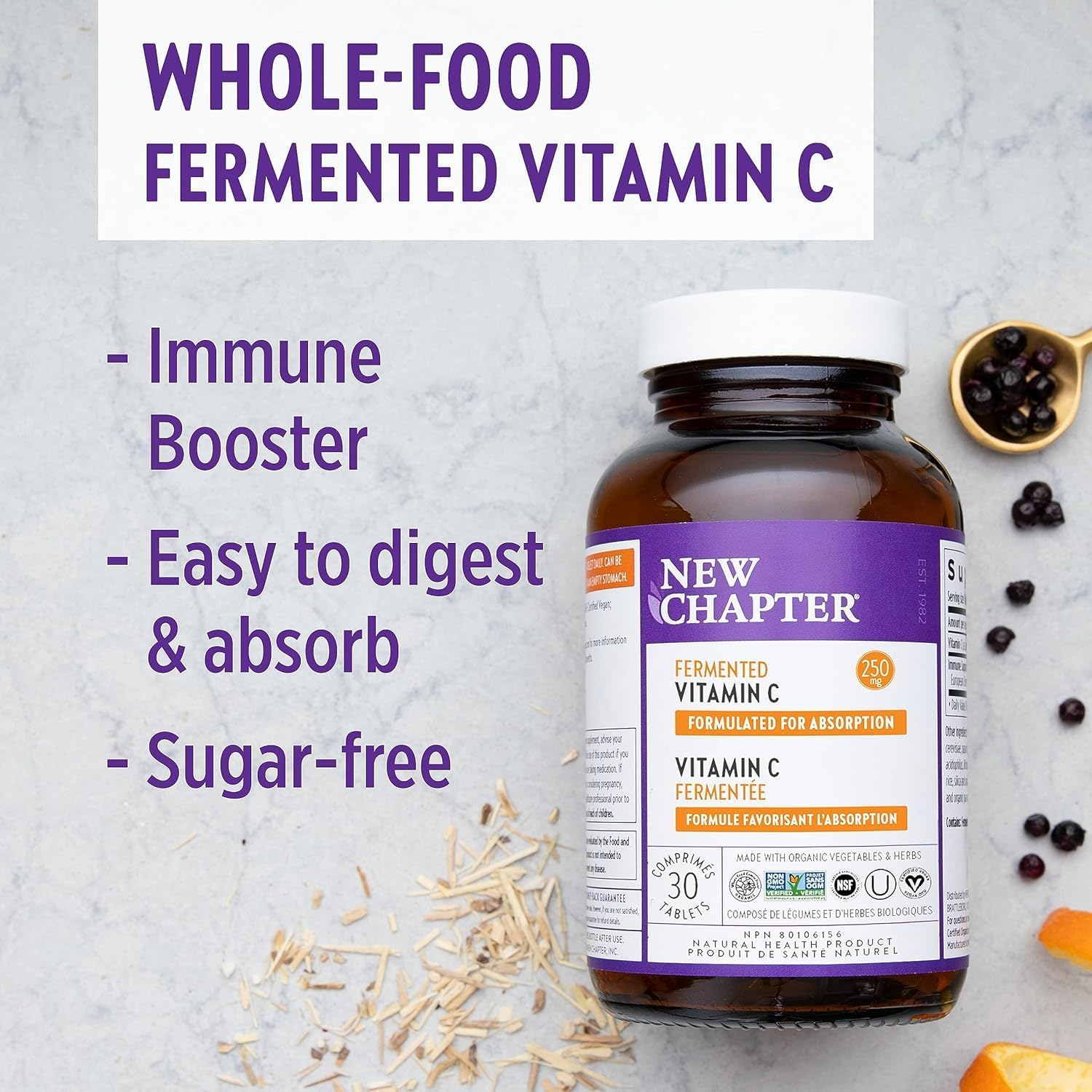 New Chapter 维生素 C + 接骨木果,含发酵维生素 C/全食物草本 + 胶原蛋白保护,30 片(1 包)