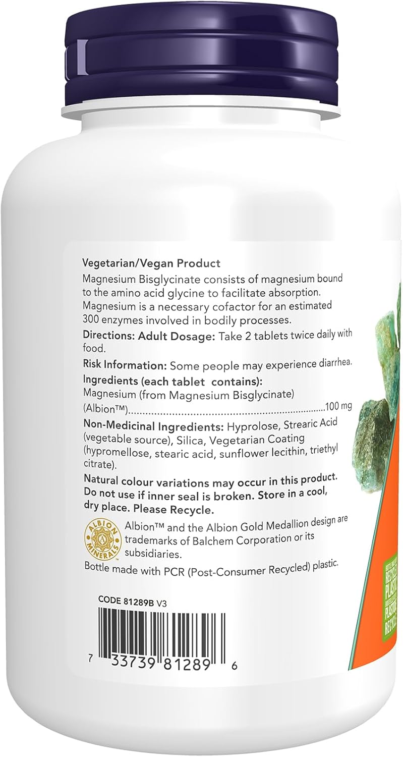 NOW Supplements, 甘氨酸镁 100 毫克,高吸收形式,180 片装