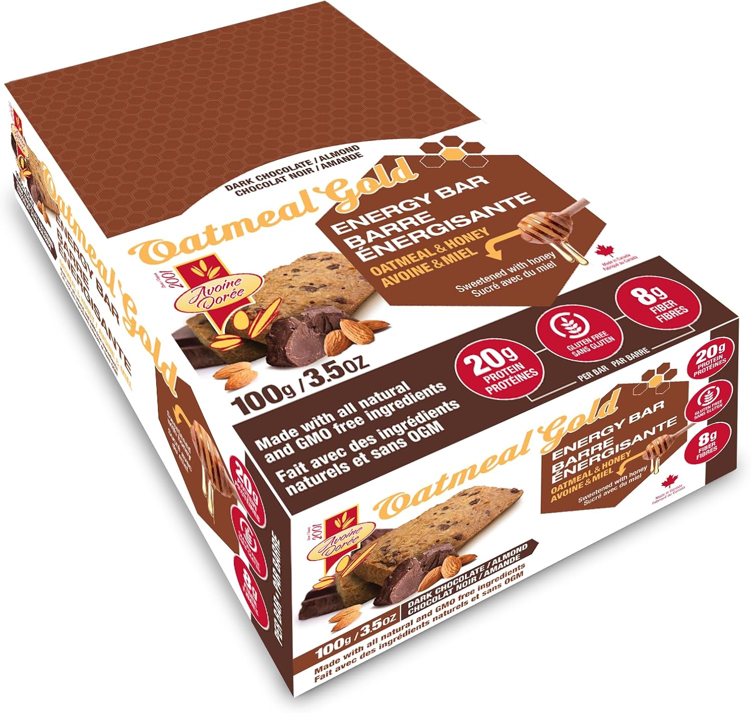 燕麦蜂蜜蛋白能量棒,无麸质零食,高纤维,黑巧克力杏仁,100克(12条)