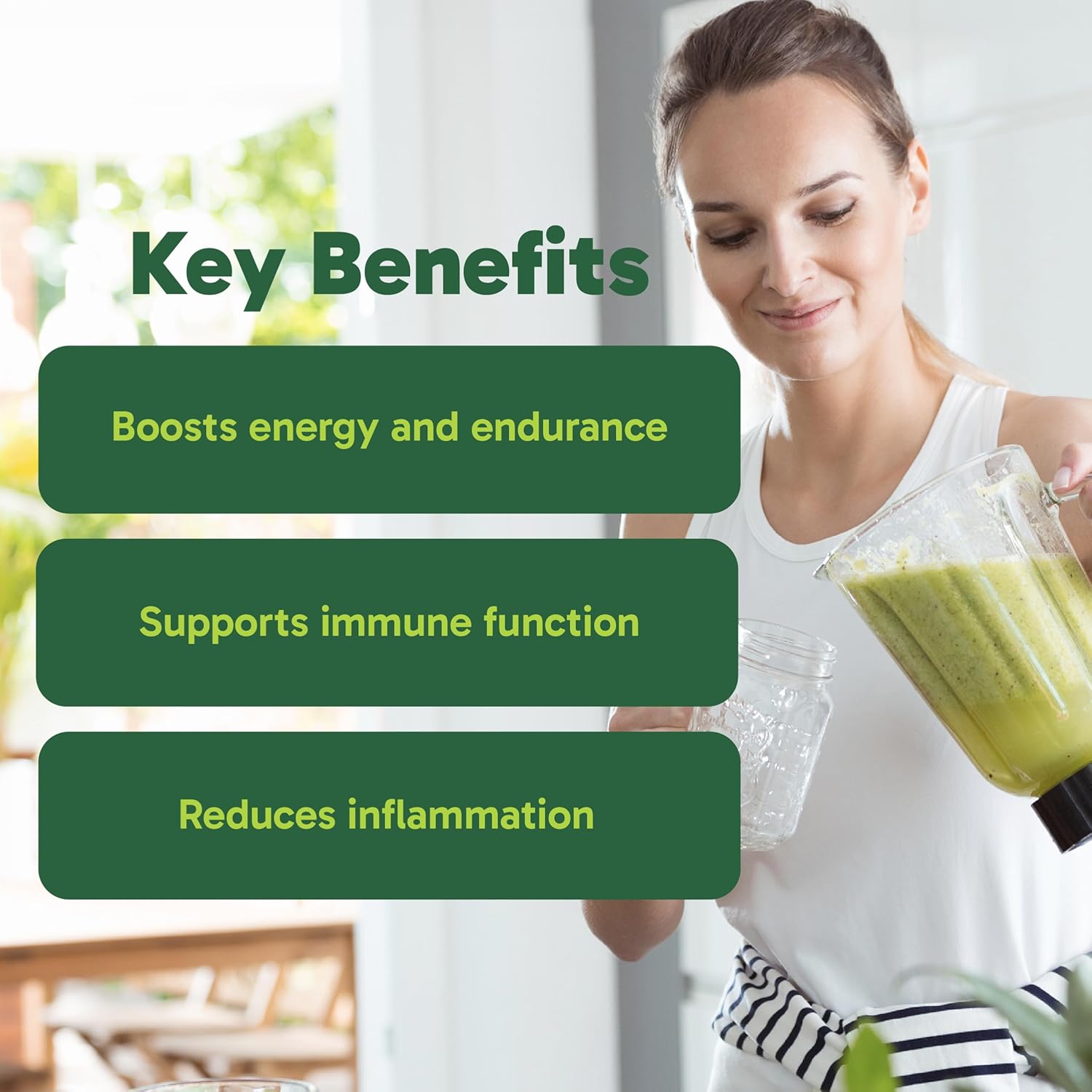植物蛋白:我们的蓝绿色螺旋藻是适合以植物为基础的人士的绝佳替代蛋白质来源。铁的来源:作为纯素食主义者或素食者,很难找到天然的铁来源;一定要尝试螺旋藻来补充铁。纯净的来源:用于种植螺旋藻的水从地下 400 多米处抽取,以确保纯净的来源以及独特的微量矿物质含量。万能的超级食物:螺旋藻富含维生素和矿物质,还可以帮助增强免疫系统,改善胆固醇水平,并减轻季节性过敏症状。支持加拿大:一家总部位于 BC 的家族企业,已有 34 年多的历史。自豪地在加拿大制造,并在 GMP 认证的工厂生产,并经过严格的纯度和效力测试,提供值得信赖的质量和安全性。