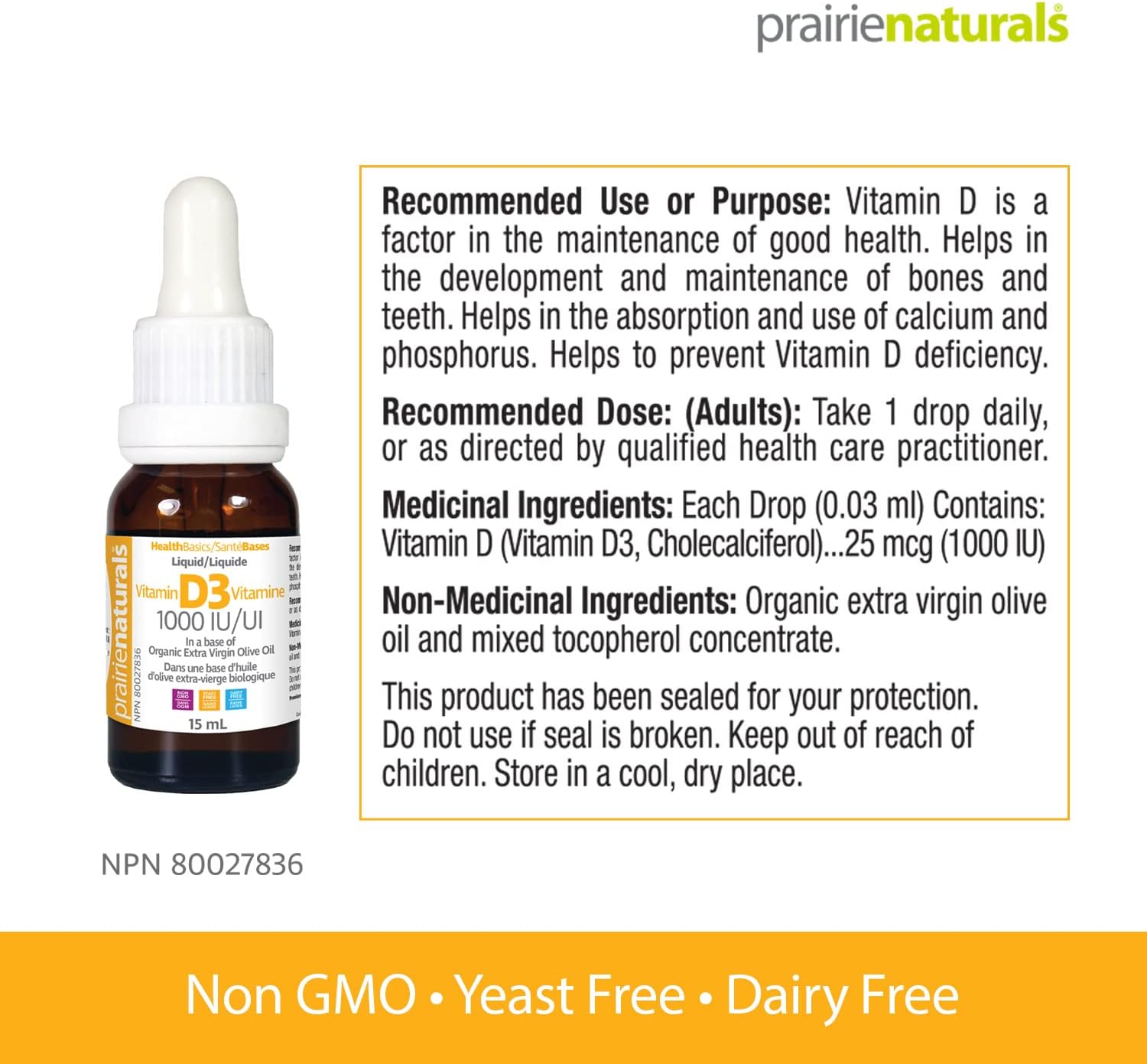 Prairie Naturals 液体维生素 D3 胆钙化醇 1,000iu 15ml,1 瓶
