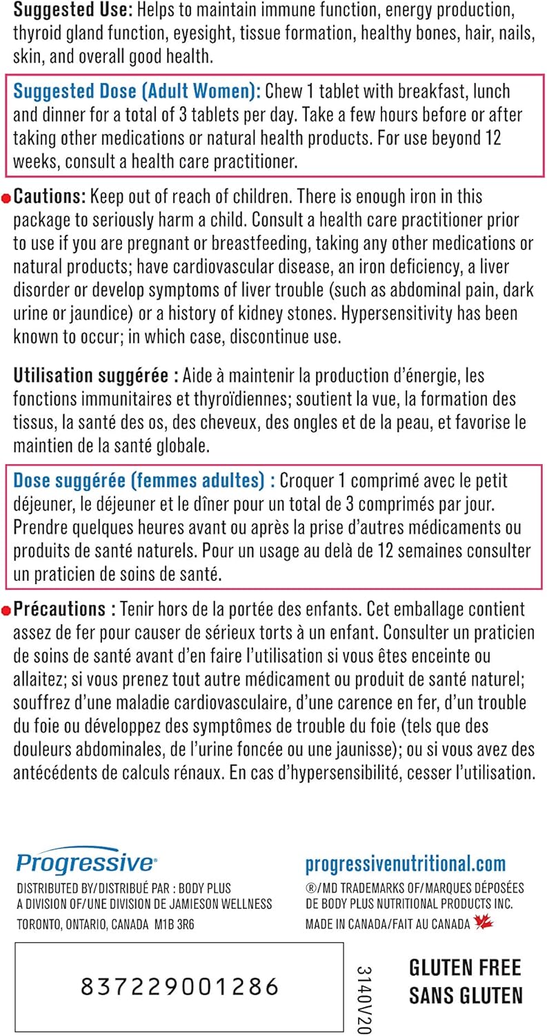 Progressive 成人女性复合维生素 - 60 片咀嚼片 | 含蔓越莓、达米阿那提取物、绿色食品浓缩物、绿茶、辅酶 Q10、玛卡、维生素 K2、维生素 D3 和谷胱甘肽
