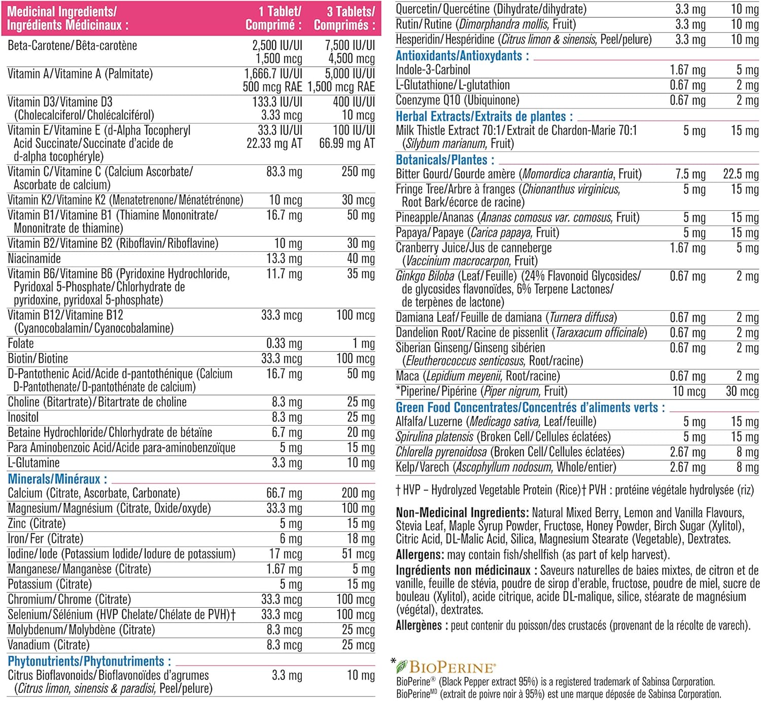 成人女性专用复合维生素是一款针对性配方,旨在满足过着“正常”现代生活方式的女性的营养需求。每粒植物胶囊均专为女性配制,蕴含蔓越莓、达米阿那提取物、绿色食品浓缩物、绿茶、辅酶Q10、玛卡、维生素K2、维生素D3和谷胱甘肽。每日服用3粒胶囊,有助于维护您的心脏、骨骼、甲状腺和免疫系统健康,并对抗自由基,平衡酸碱值。