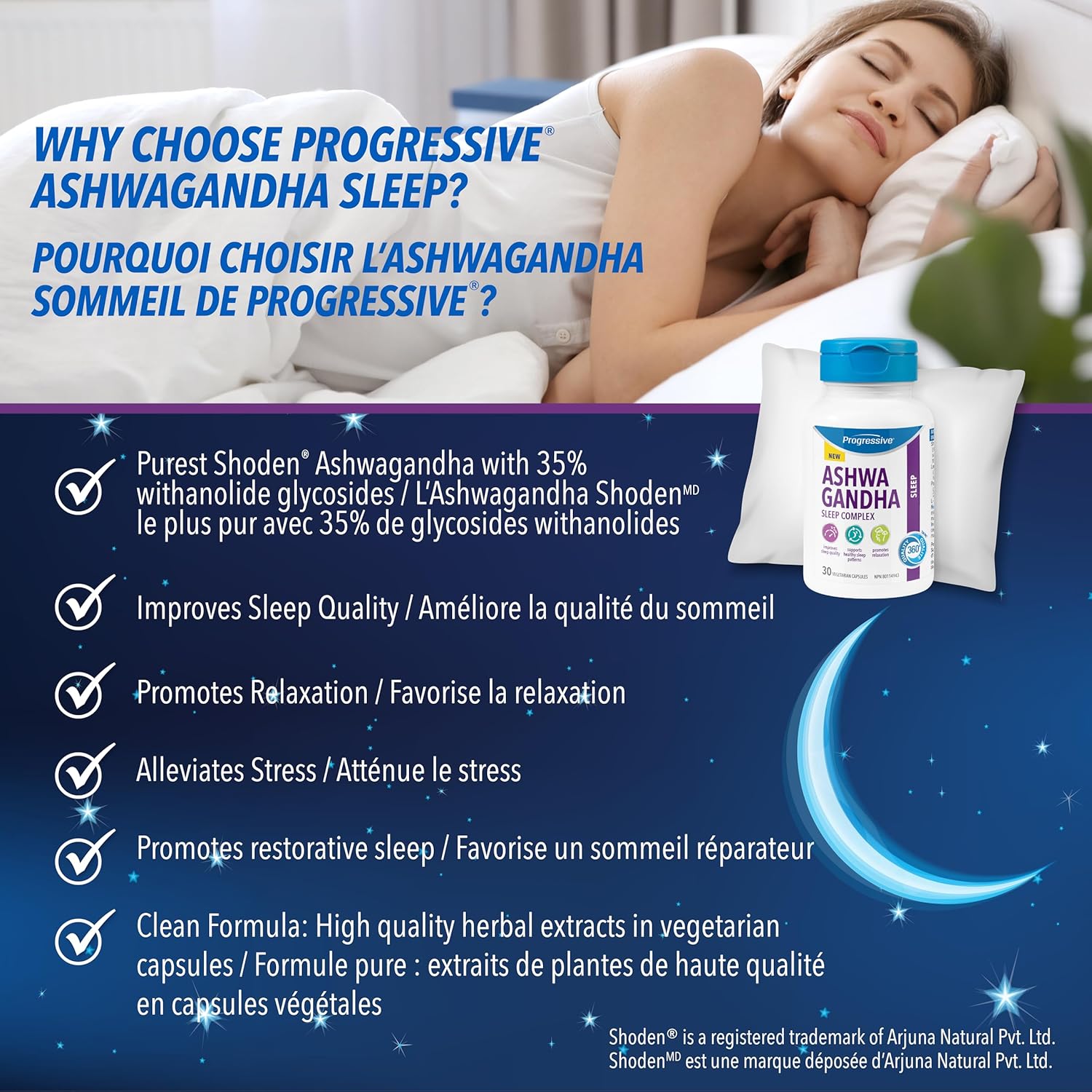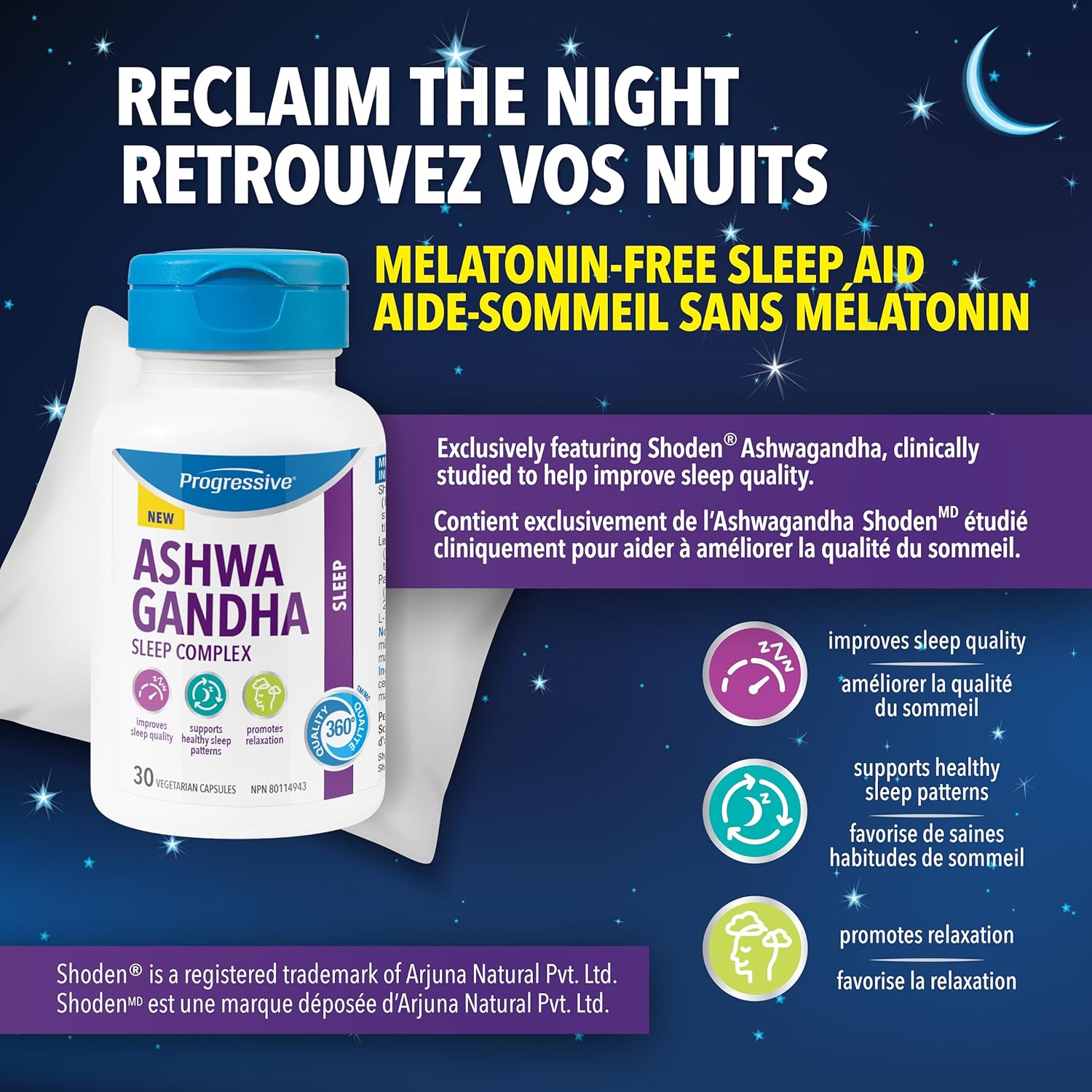 Progressive Ashwagandha 睡眠复合物是一款不含褪黑激素的助眠产品,蕴含四种天然草本成分:南非醉茄、香蜂草、茶氨酸和西番莲。Shoden® Ashwagandha 是一种经过临床研究的南非醉茄,有助于改善睡眠质量。柠檬香蜂草、茶氨酸和西番莲的辅助草本混合物有助于促进放松、缓解压力,从而维持健康的睡眠模式。