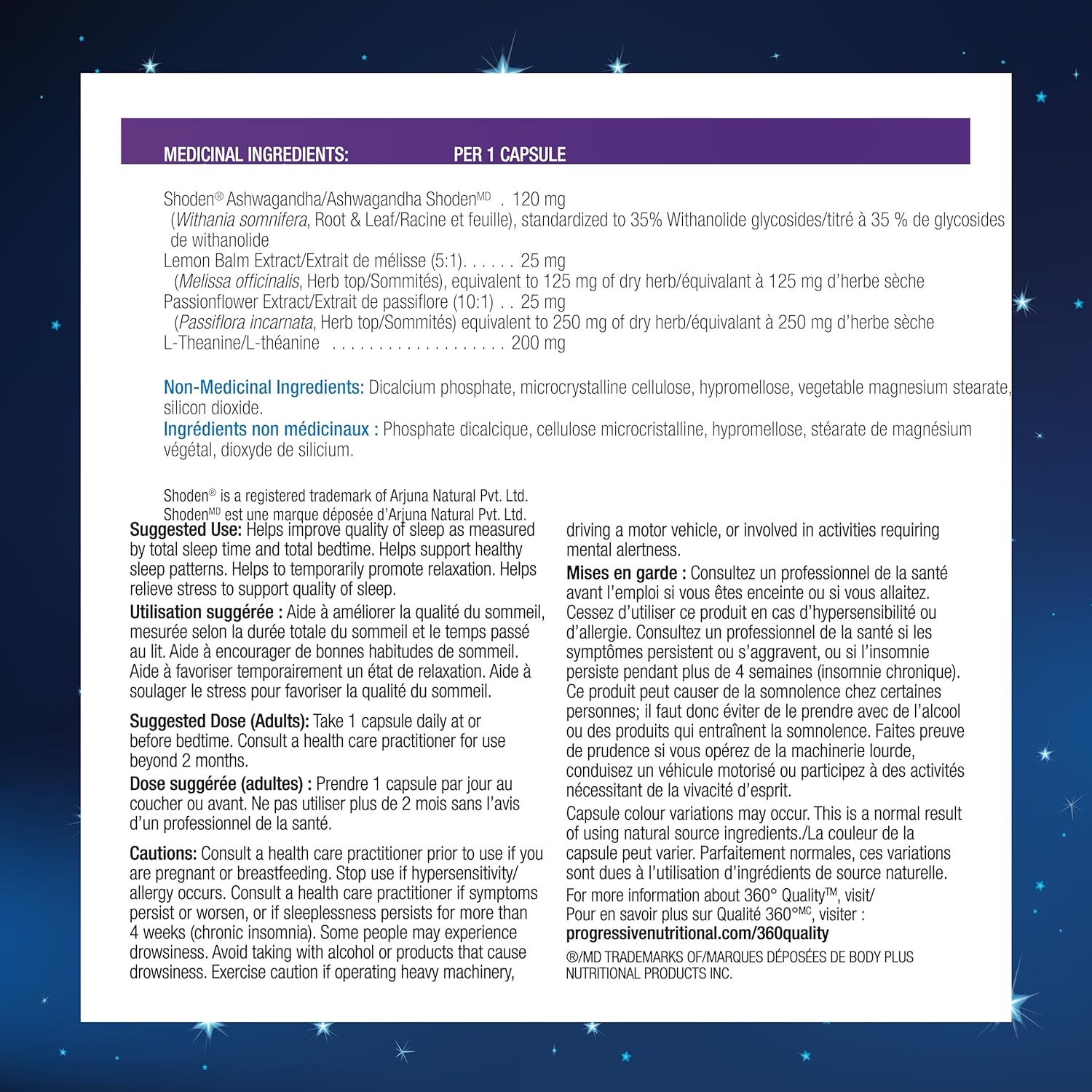 渐进式南非醉茄睡眠复合物 — 含有 Shoden® 南非醉茄、柠檬香蜂草、L-茶氨酸和西番莲,改善睡眠并减轻压力 — 30 粒素食胶囊
