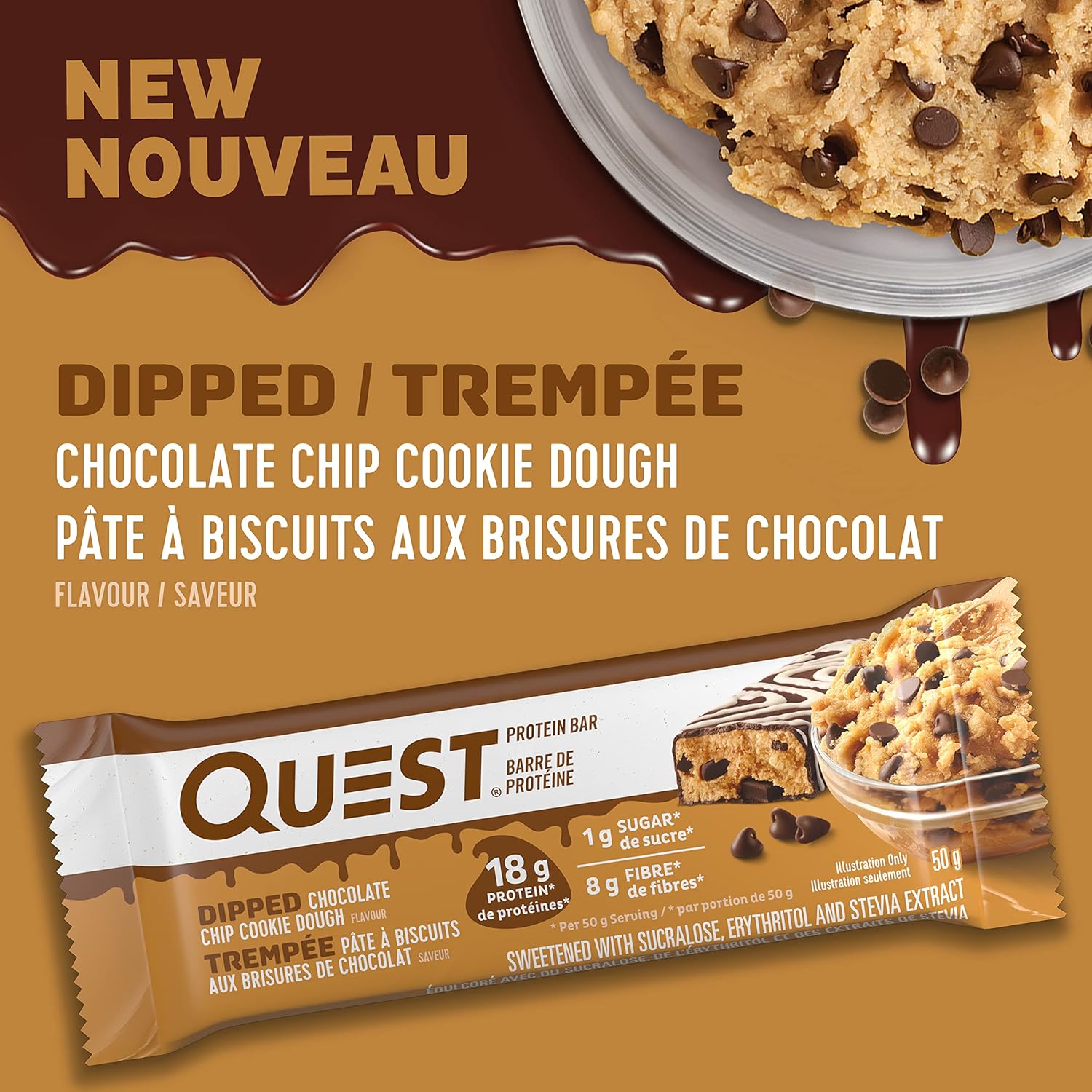 Quest Nutrition 蘸巧克力曲奇面团蛋白棒,高蛋白,高纤维,低糖,低碳水化合物,适合生酮饮食,21 克蛋白质,1 克糖,12 支