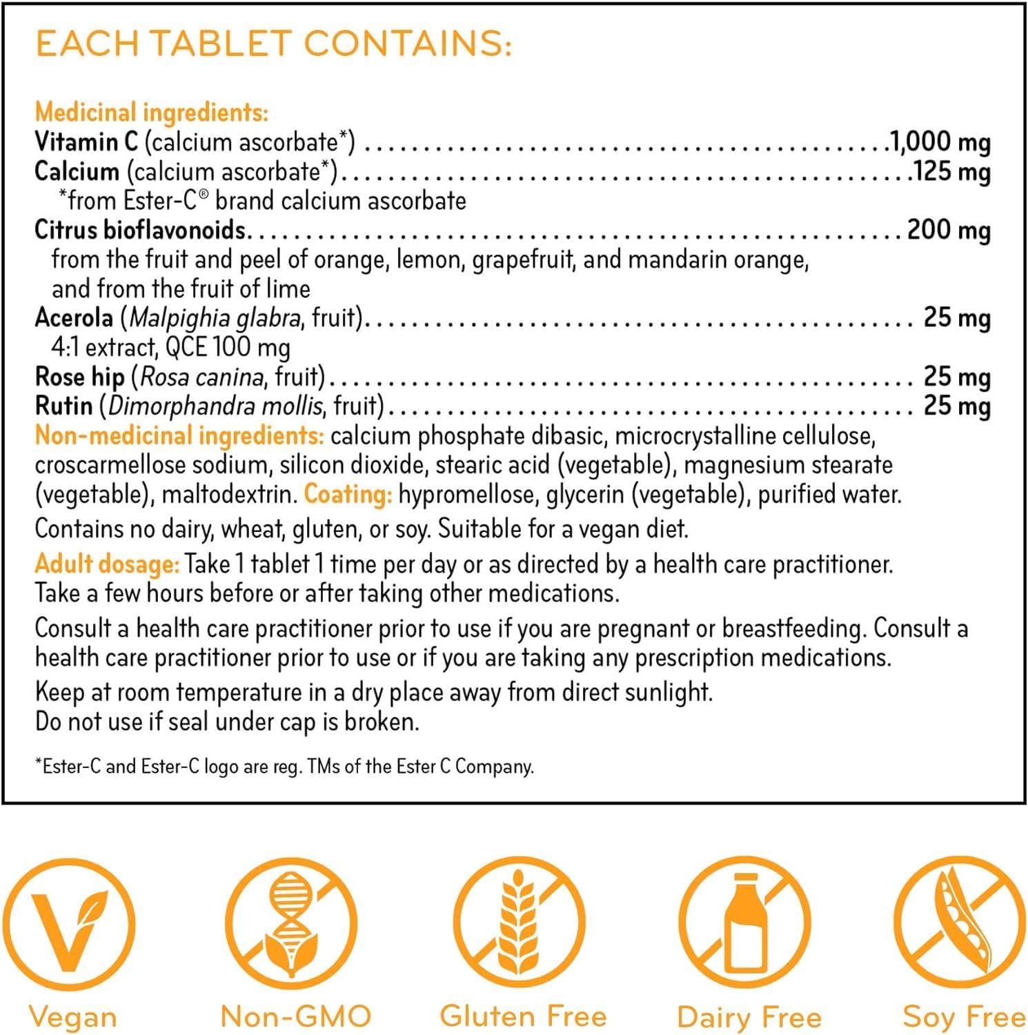 Sisu Ester-C 1000mg 片剂,24 小时免疫支持,酸性较低,比其他形式的维生素 C 更易吸收和保留,210 T,纯素,非转基因,无麸质,无乳制品,无大豆